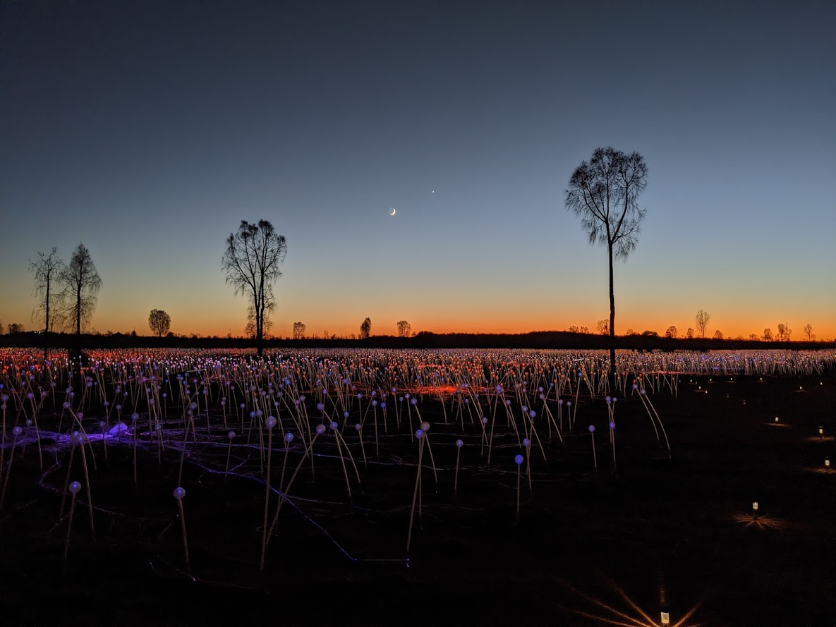 Field of Light is an installation between Uluru and Kata Tjuta. Bruce Munro is the artist. Unfortunately photos may be taken, but not reproduced on line. Although it is clear that this blog could in no way be considered commercial, reading the information suggests that no photos can be replicated. This is such a pity as the installation was stunning and it would be lovely if it could be seen by more than the visitors to Uluru. I’m going to ask the artist if I am understanding the information as I’d love to add the photos to this blog.