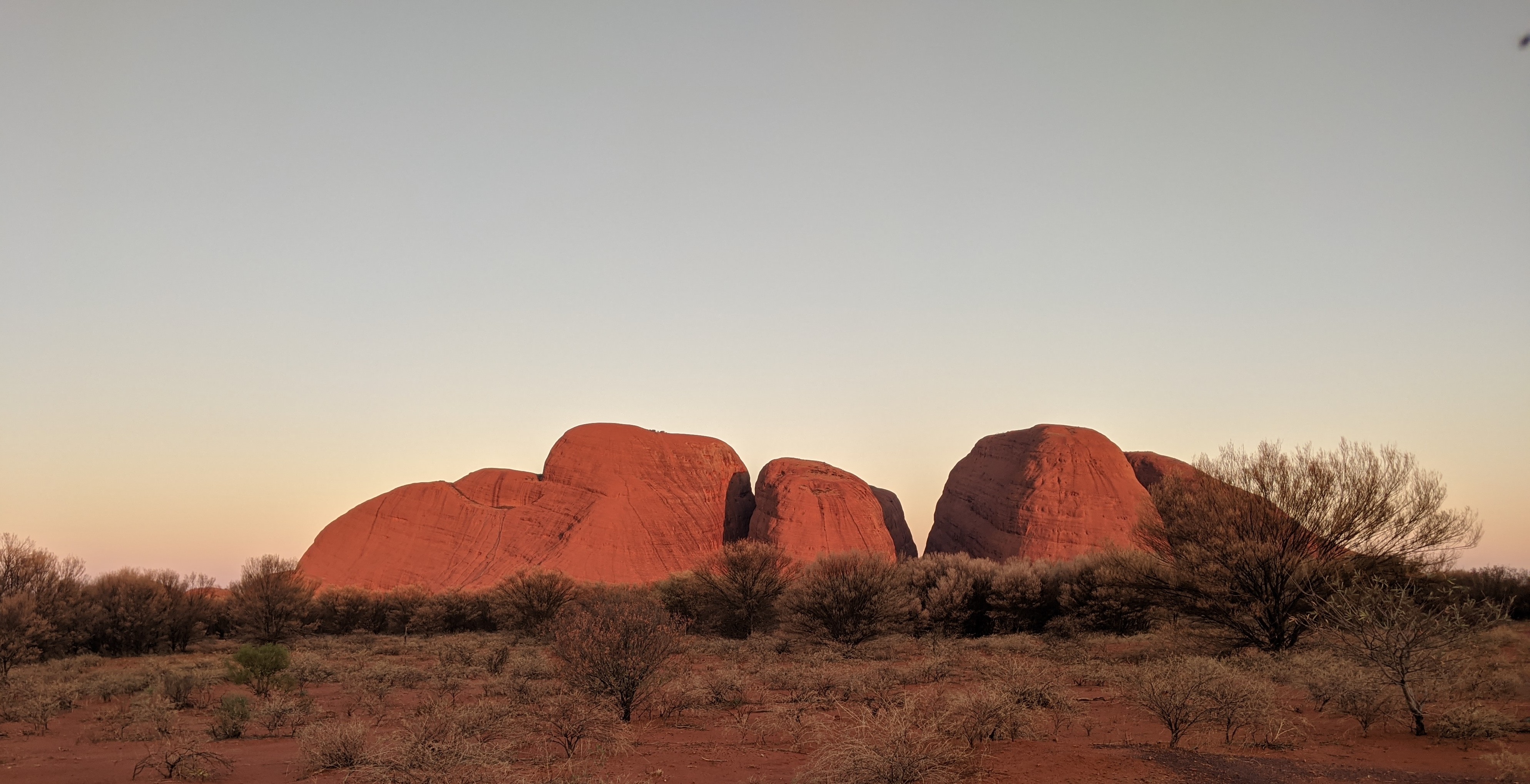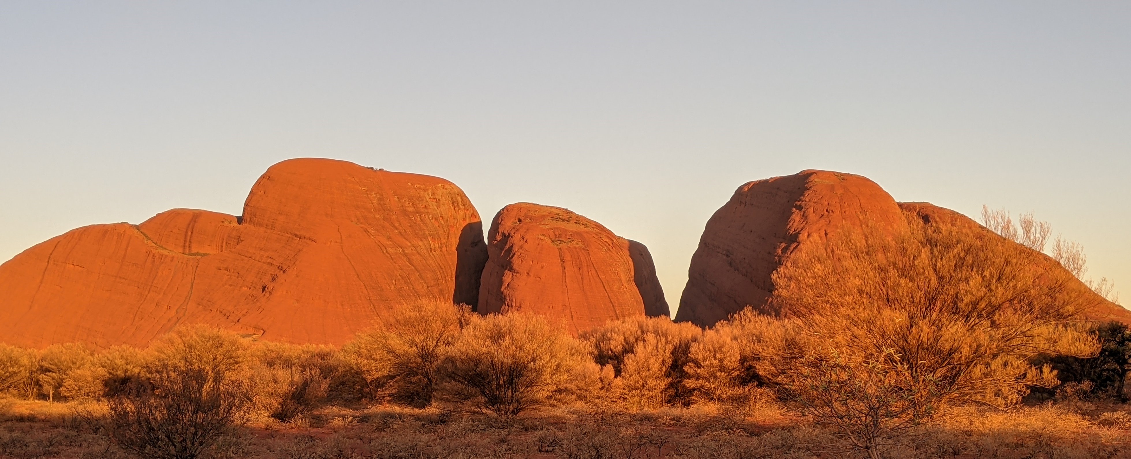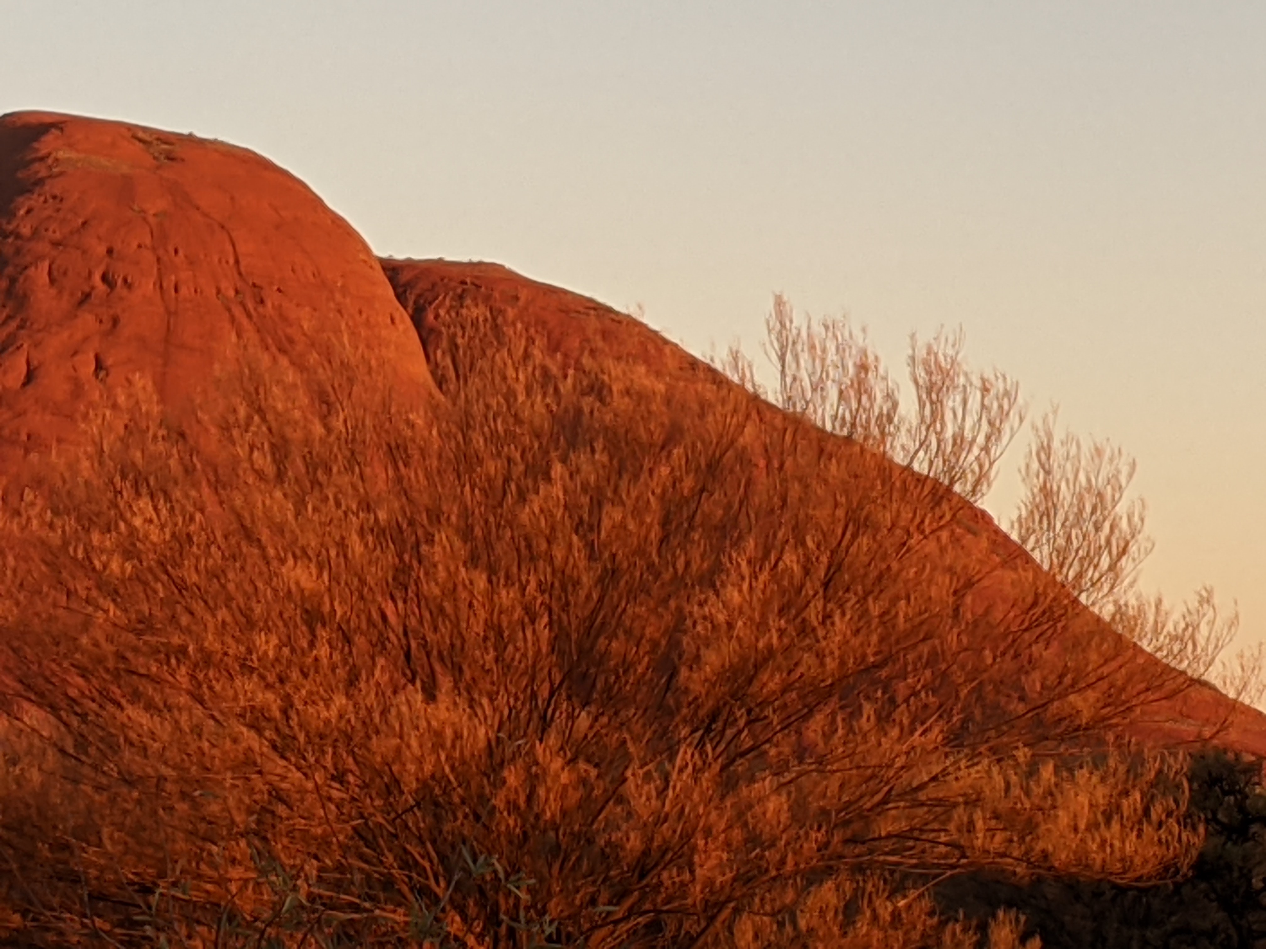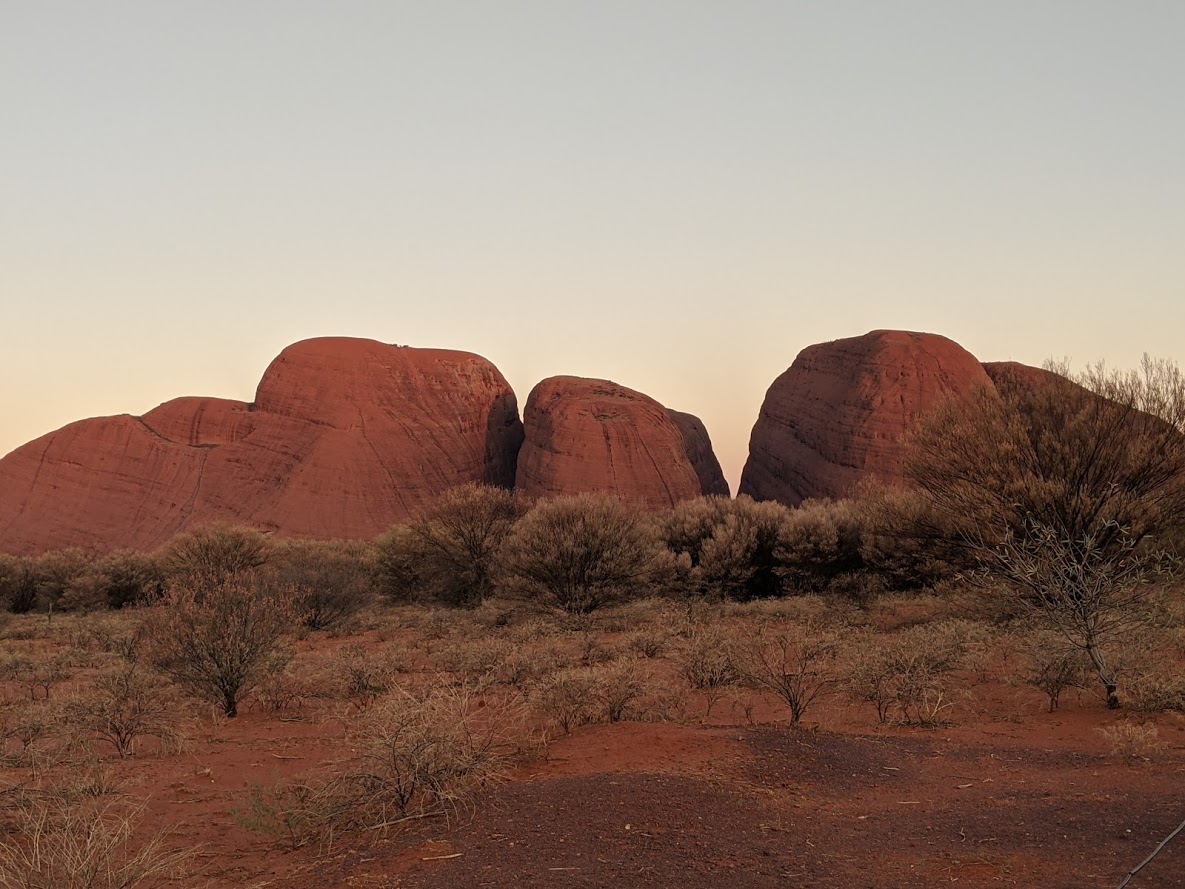 The first visit after our arrival and settling into the lovely Sails in the Desert was Kata Tjuta for the sunset. Kata Tjuta is also known as the Olgas, but consistently the guides use the Indigenous names, while linking them to the European names for clarity.