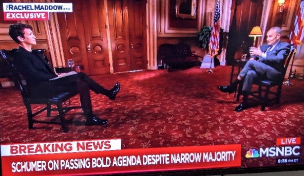 The interview between Schumer and Maddow took place in a Senate Committee Room – part of the horrific scenes of January 6th. The setting sent a strong message, as indeed did the Senate sitting to resume their work on the very day of the attempted insurrection.