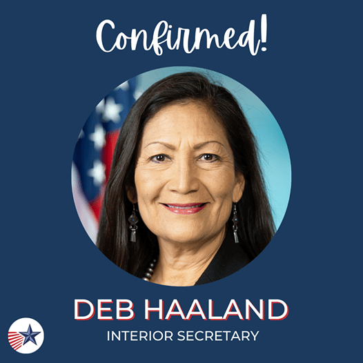 Deb Haaland has been confirmed as Secretary of the Interior. Haaland is one of the first two Native American women elected to the U.S. Congress and is now the first ever native American cabinet member! Deb Haaland is expected to reverse many of the negative environmental regulations put in place by her predecessor, including reinstating wildlife conservation rules, expanding the use of wind and solar power on public lands and waters, and implementing policies to fight climate change.