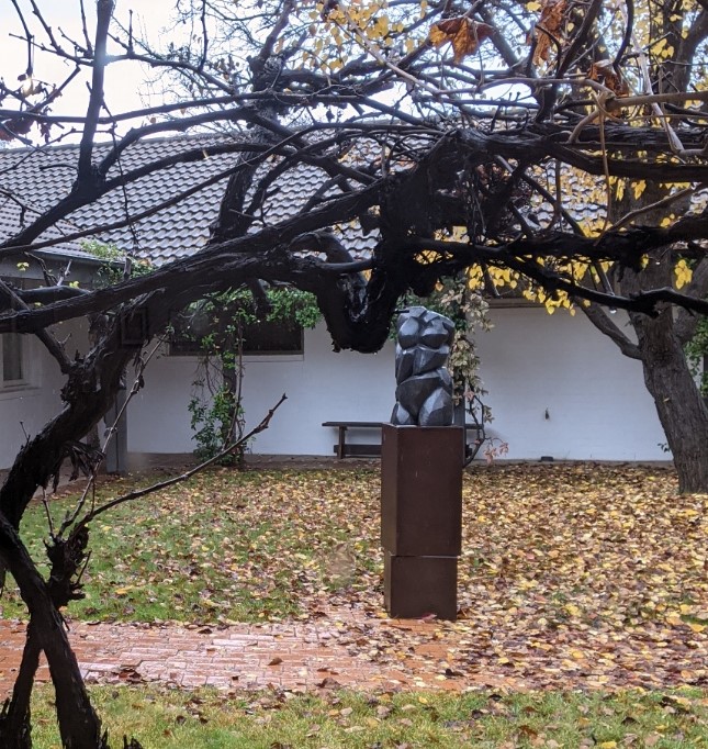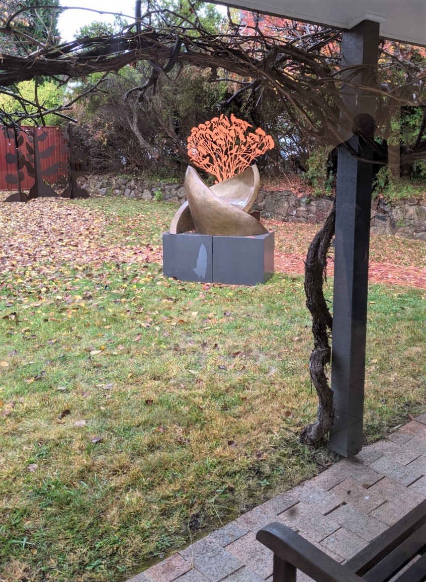 Art in the garden observed on a cold Canberra day from the warmth inside the galleries