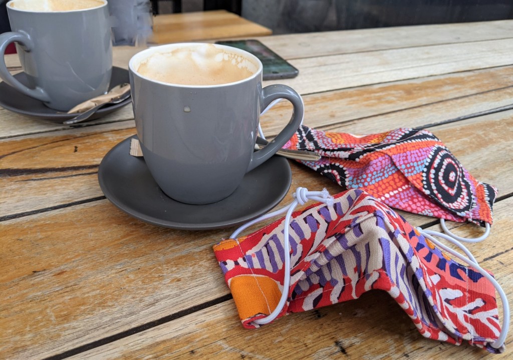 The venue was Edgar’s Inn where the check in is evident in several places and hand sanitiser is at the door. Social distancing is in keeping with the rules. On a culinary note, our coffees were excellent, the food and service were good, and Leah enjoyed her breakfast. We had salads and Leah had home made pumpkin and peanut butter biscuits, a toothbrush, kibble and some coffee froth.