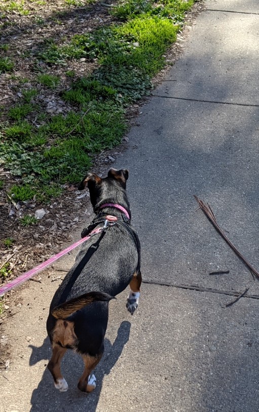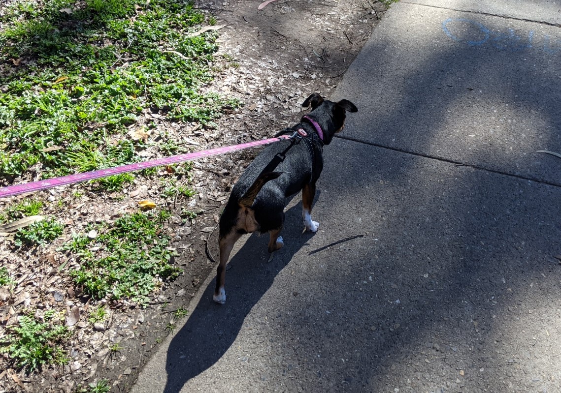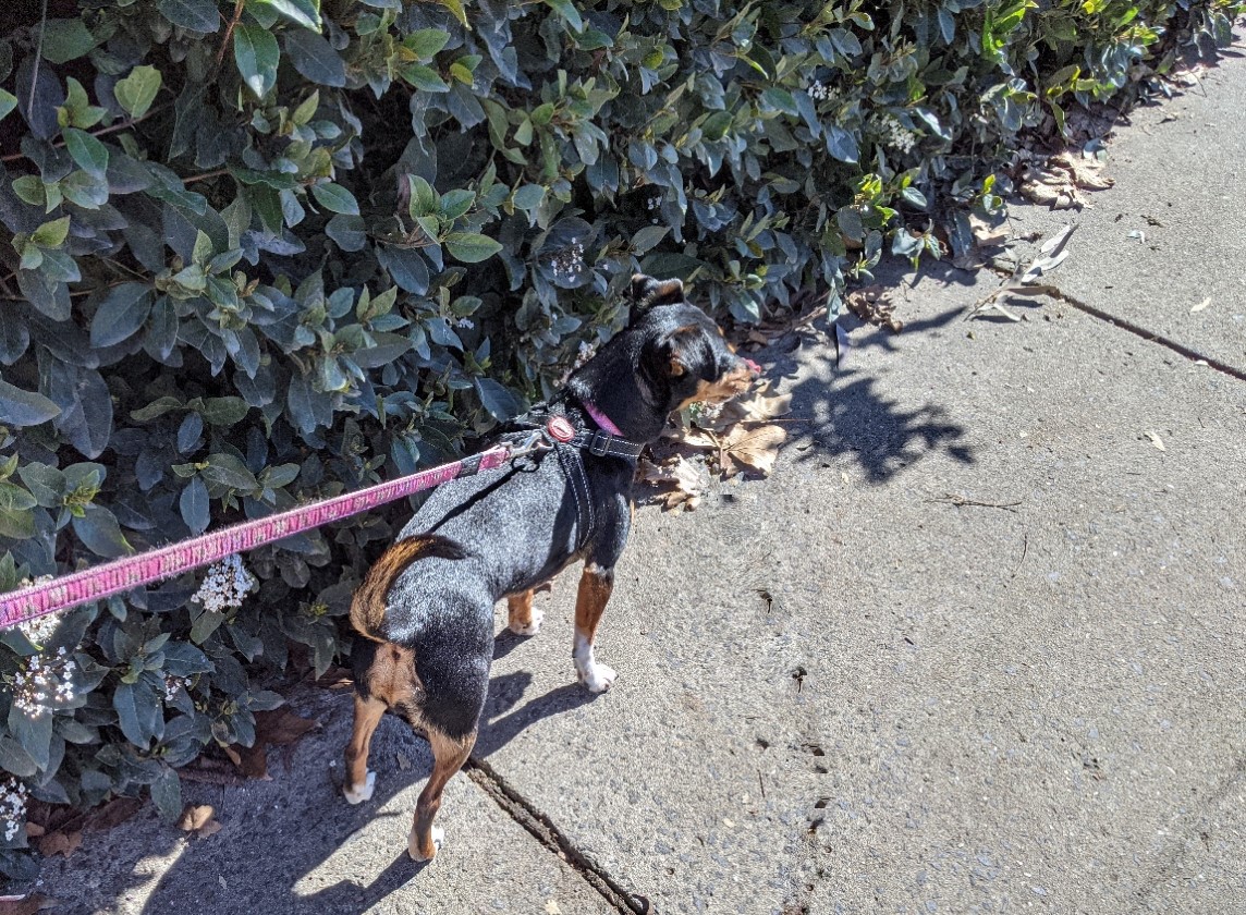 Our Day 2 lockdown walk showed our regular coffee shop open but dispensing take away coffees to people who were avidly social distancing and wearing masks. Leah stopped briefly to admire the foliage but strode out quickly – no wasting her precious time on such nonsense.