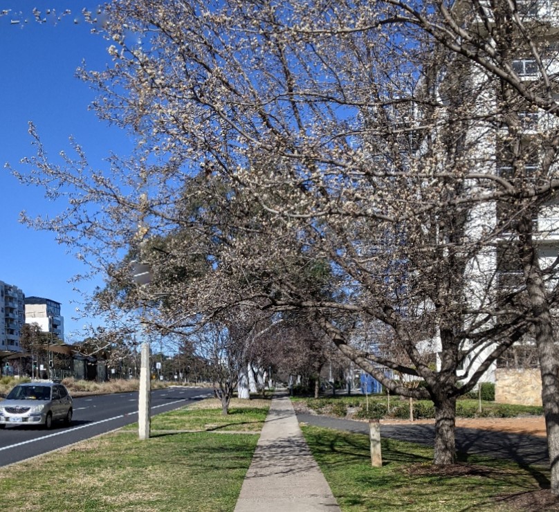 The discovery of one case in Canberra led to a lockdown from 5.00 o’clock that evening. We may exercise for an hour each day. Our exercise is walking Leah, not an onerous task with blue skies, lovely early spring foliage, and a determined dog. She is going to get her half hour morning and afternoon without fail!