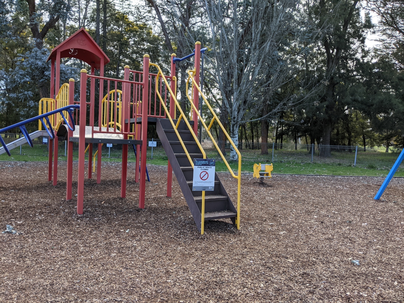 Once again the children’s playground was closed with signs advising that it was not open to the public.