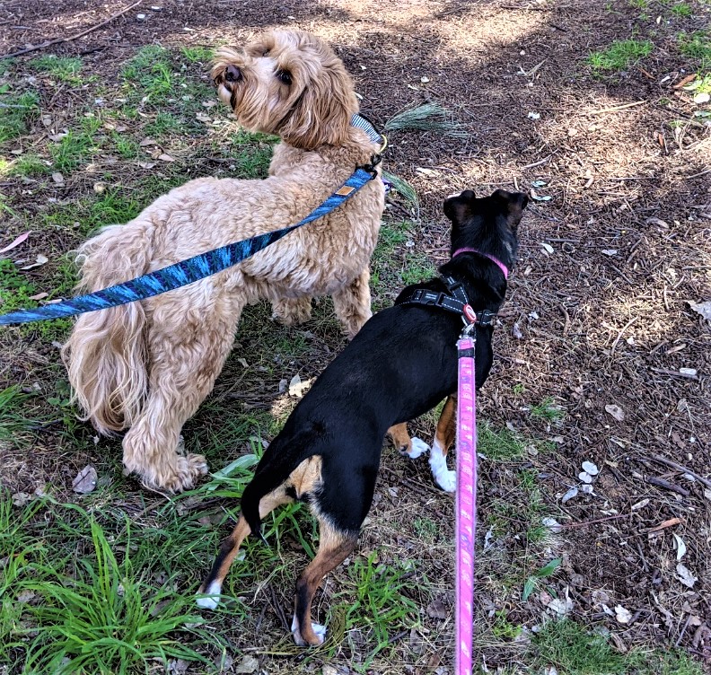 Taking advantage of the changes – playground open, five masked people can meet outside while social distancing, and Leah was able to walk with her friend.