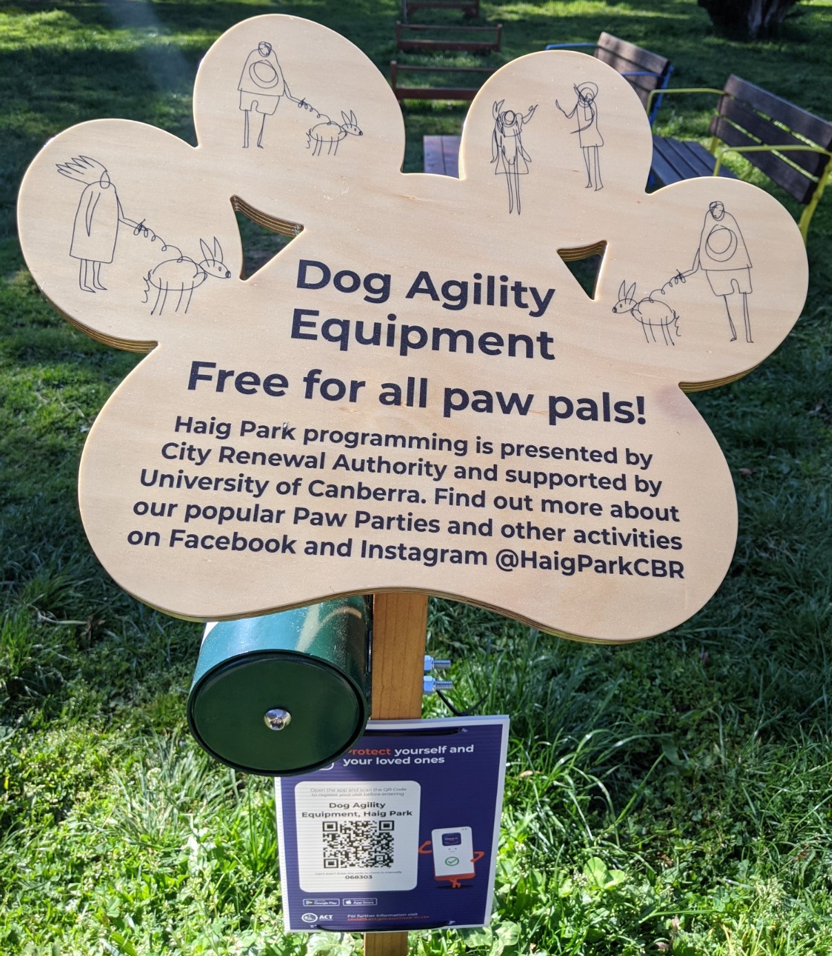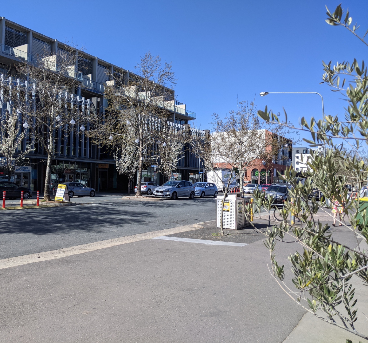 Day 35 lockdown walk – streetscape emptiness, but the trees are blossoming; Leah is welcome at the dog facilities, but we must check in.