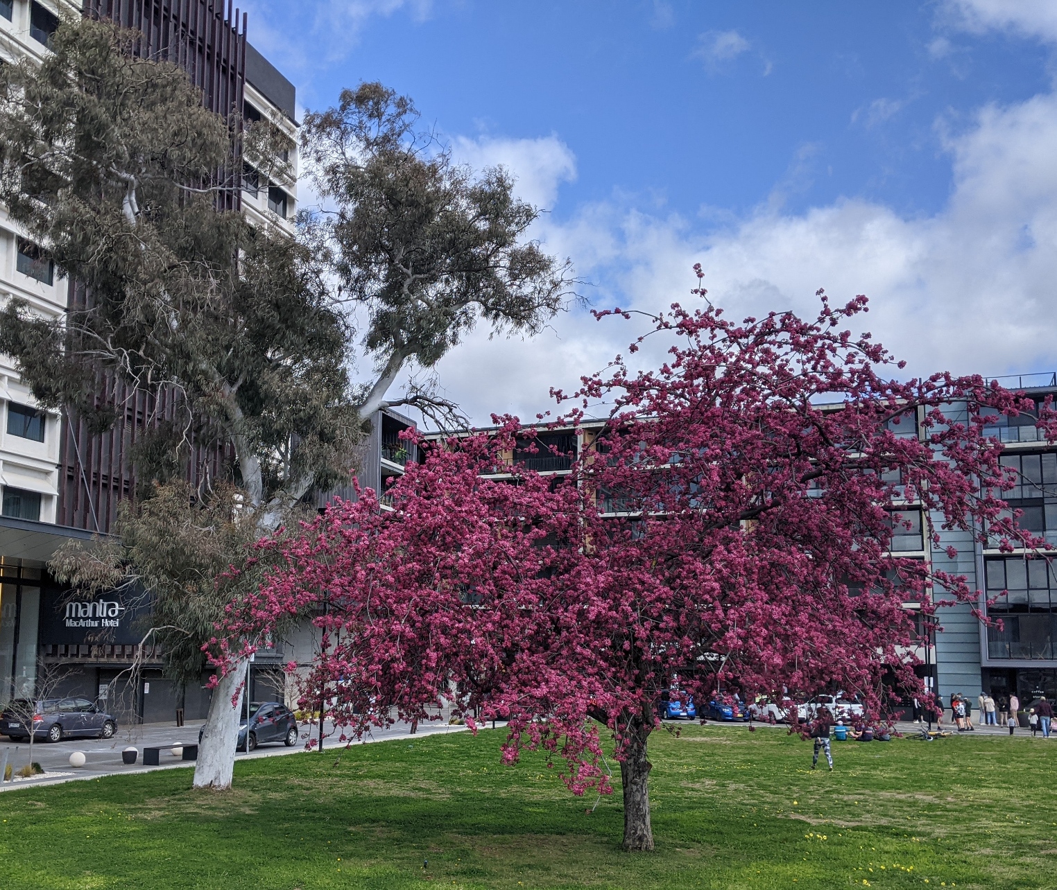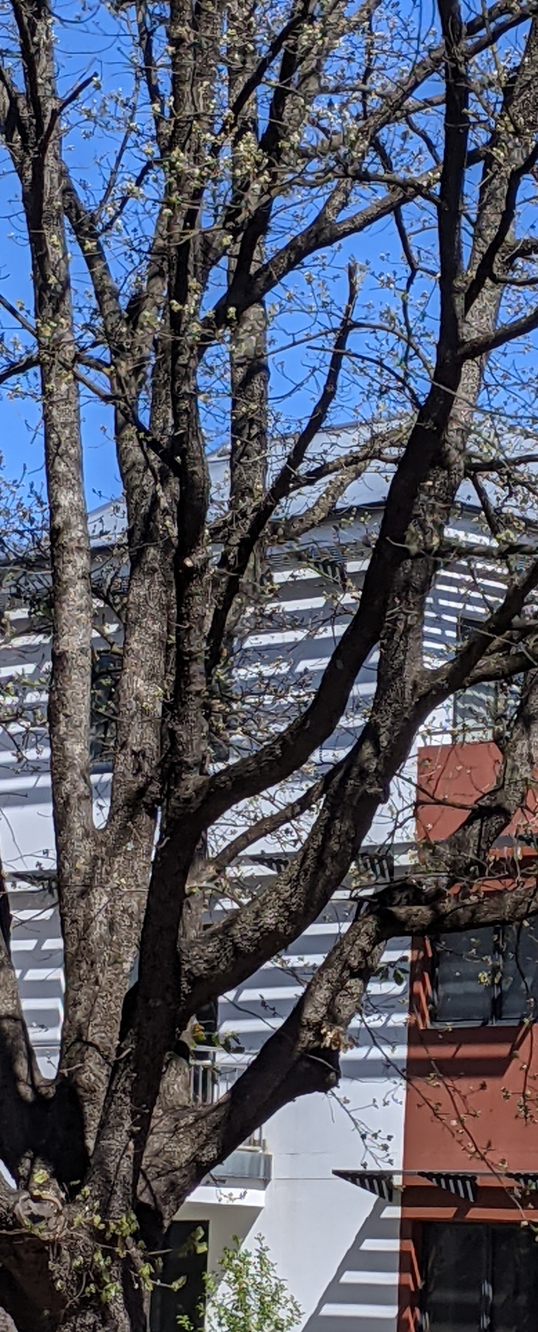 Day 34 lockdown walk – some blossoms remain; construction proceeds