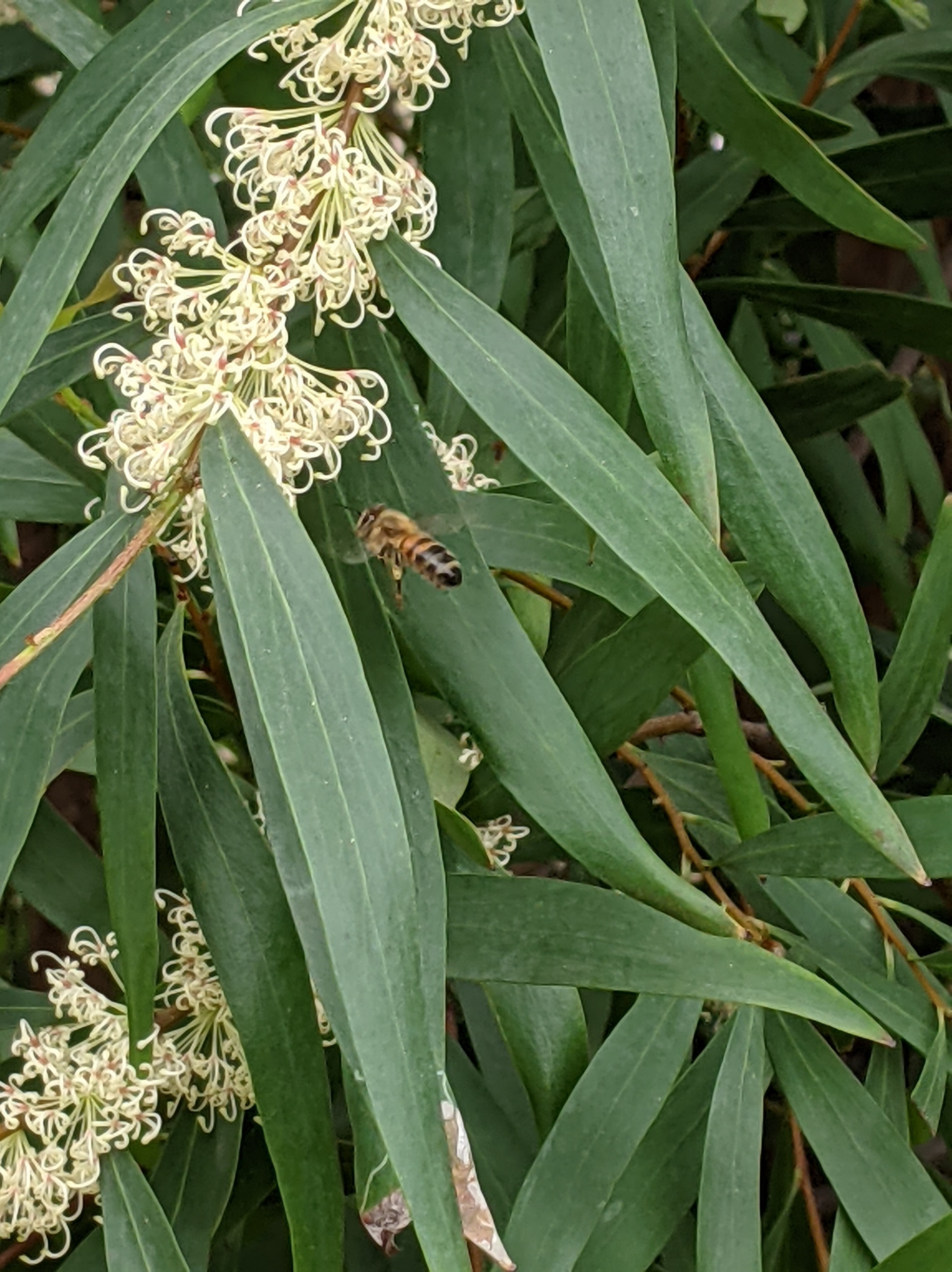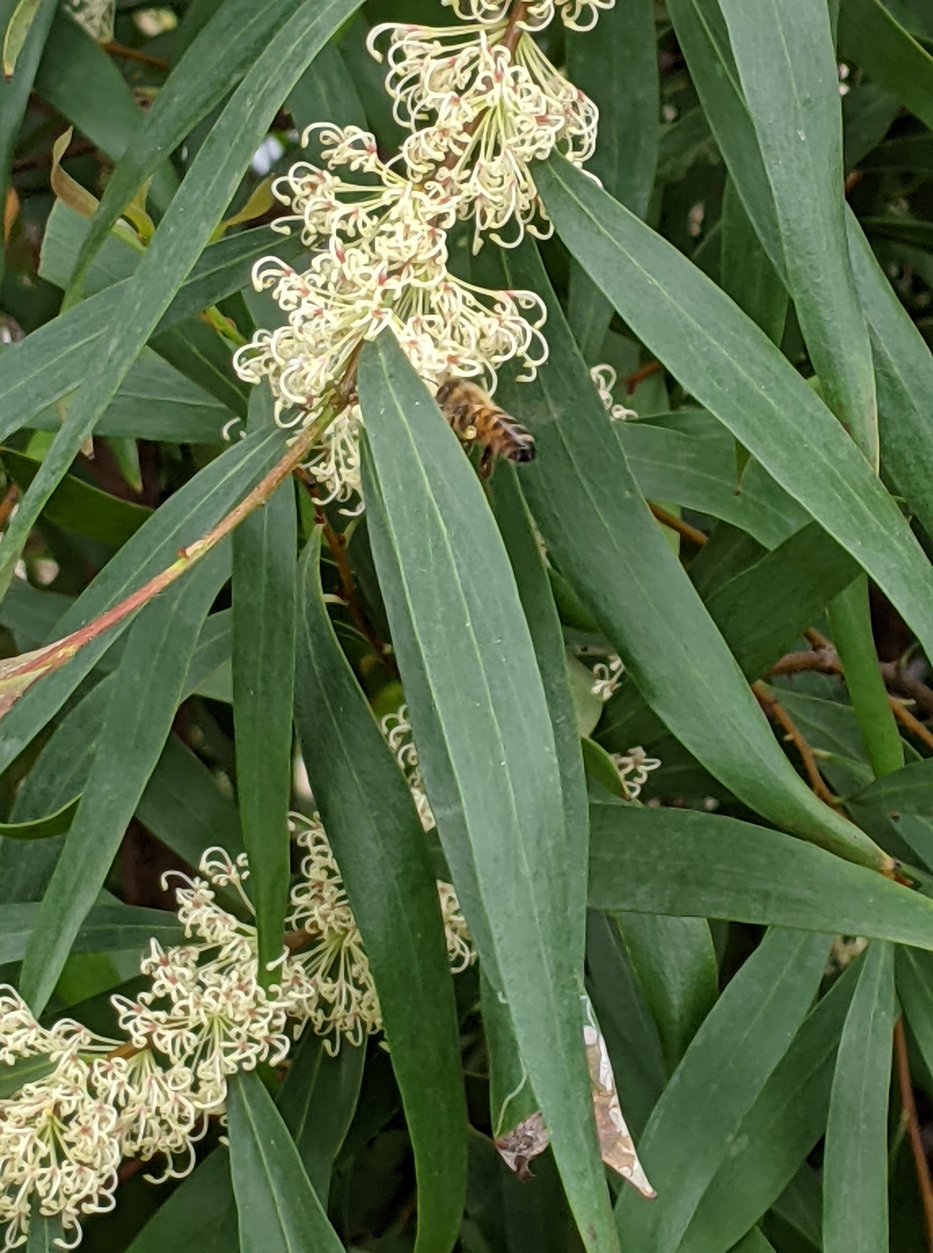Day 58 lockdown walk before it started raining – a brave bee in a different variety of wattle bloom