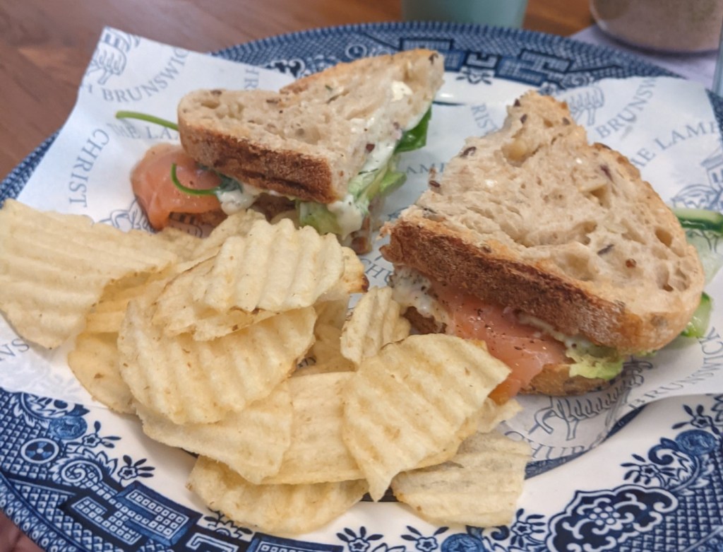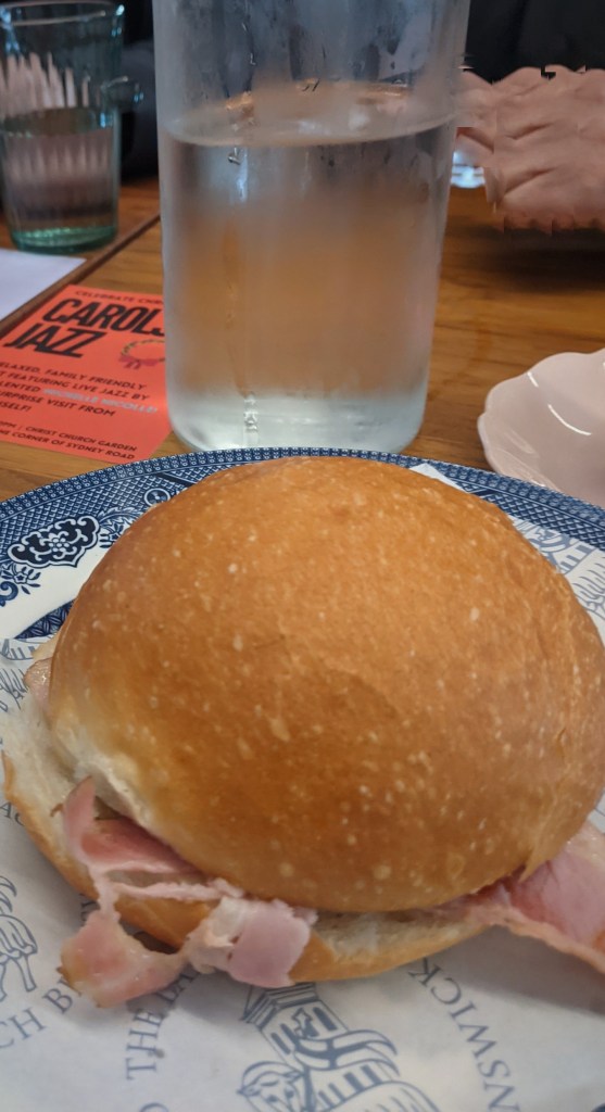 One of the most interesting was the Lamb and Flag in Brunswick. This pleasant venue, with its simple menu, was a delight. We chose from the menu, and the specials. On this occasion these were a smoked salmon sandwich, and a roast beef sandwich. Both were fresh, and presented with potato crisps – a very British feature, which I found rather nostalgic. The main menu offerings included a bacon butty and a roll with bacon and extras. The coffee was good. The prices are commensurate with the food, which, while not glamourous, was filling and part of a lovely occasion with very dear friends. As well, making a contribution to this courageous venture amongst the multitude of Brunswick’s restaurants and cafes was a pleasure.
