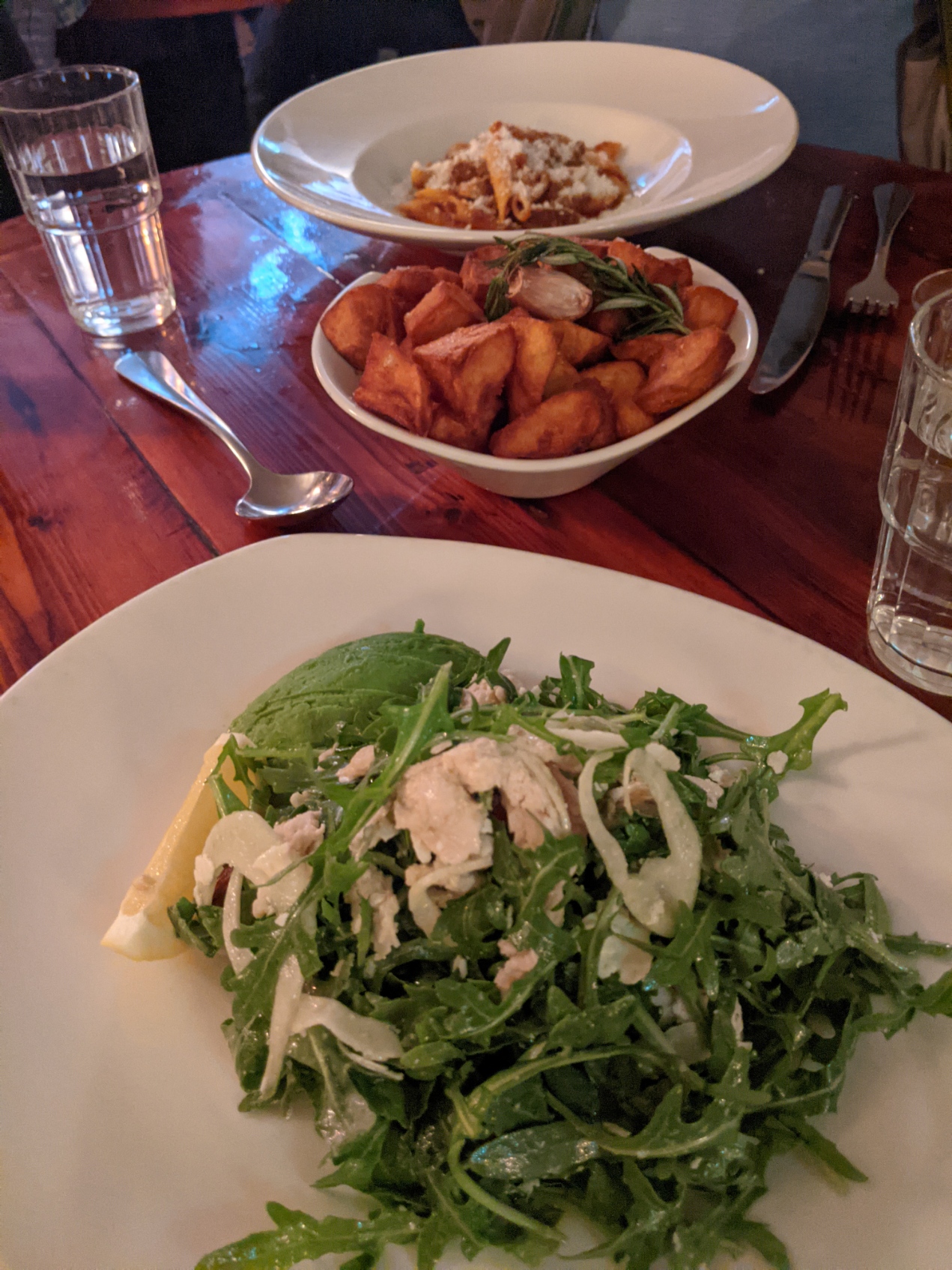 The Il Solito Posta is a lively, comfortable and fun Italian restaurant in a basement venue just off Collins Street. There was a buzz of conversation, with good humour obviously a huge feature of this friendly restaurant. At the same time, it was easy to hear the conversation at my table – an important feature in my view. The food was generally good, although the tiramisu was a little disappointing. The herb read was excellent – hot, full of flavour, crisp and generous. i enjoyed my chicken , fennel and rocket salad – particularly when paired with the crunchy garlic and rosemary potatoes. The pasta sauce from my companion’s dish was also a good accompaniment to the potatoes. The wine was good – and served in very generous portions! Overall, I would make this my ‘go to’ restaurant when staying in the vicinity in Melbourne. Although the food was not stunning, the ambience was everything it should be, and something to be enjoyed over again.