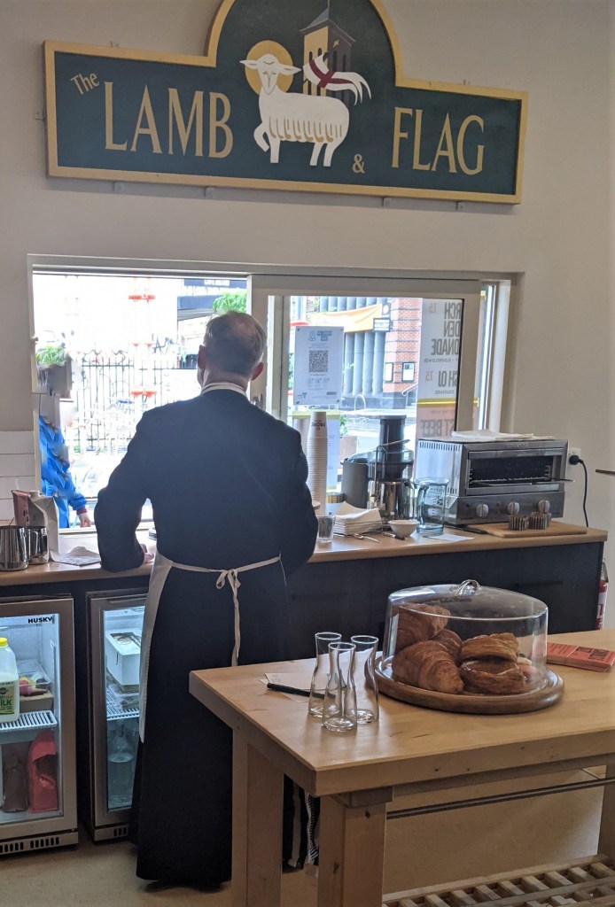 The Lamb and Flag provides a pleasant and relaxed social environment that fully meets the principle purpose of this restaurant as a community service. To be able to chat as long as we wanted, while another patron spent her time on her laptop, and people came and went provides the nucleus of a successful community social environment. In addition, free meals are provided on Thursdays, for anyone who arrives wanting something filling and tasty. In 2022 the Lamb and Flag intends to provide a venue for musicians who would like a receptive audience for their early endeavors.