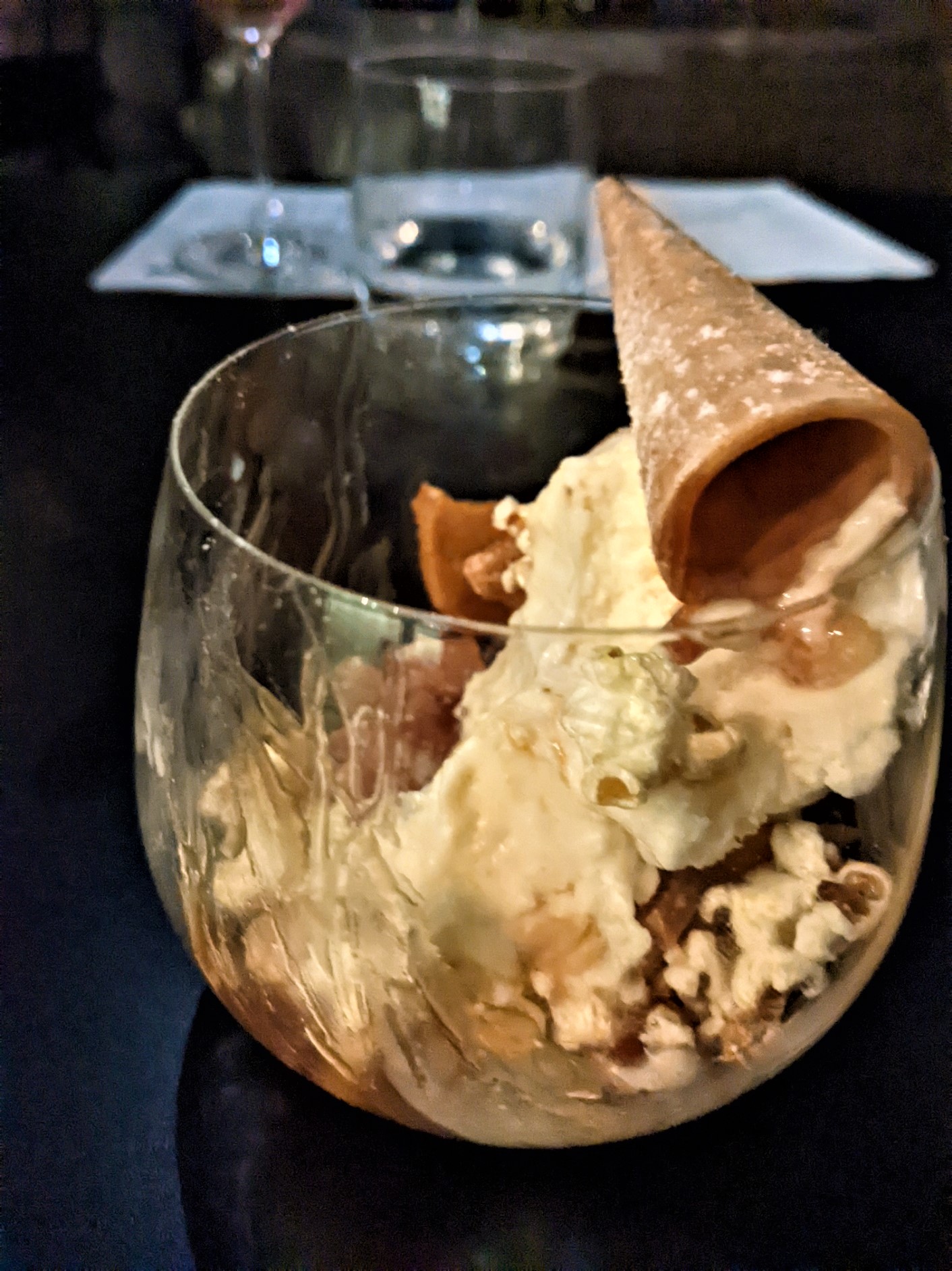 86 now has two venues, North and South. The newer site, on the southside, features more pasta, while the original site retains its varied menu. The latest features a delicious Moroccan style cauliflower dish, which went well with old favourites, charred corn entre and the wonderful pumpkin, sage and burnt butter tortellini. I was pleased to visit 86 once again. I realise that the restaurant is rather noisy – but this is the one occasion I do not mind as I enjoy the food so much. If noise really is an issue, the outside tables are under cover and the area is well warmed. The photos below feature the cauliflower, an excellent Bellini and the delicious dessert that we had partially eaten before I remembered to photograph it. The dessert comprises ice-cream, toffee, a syrup and popcorn. I suppose it is rather childish, but I love it.