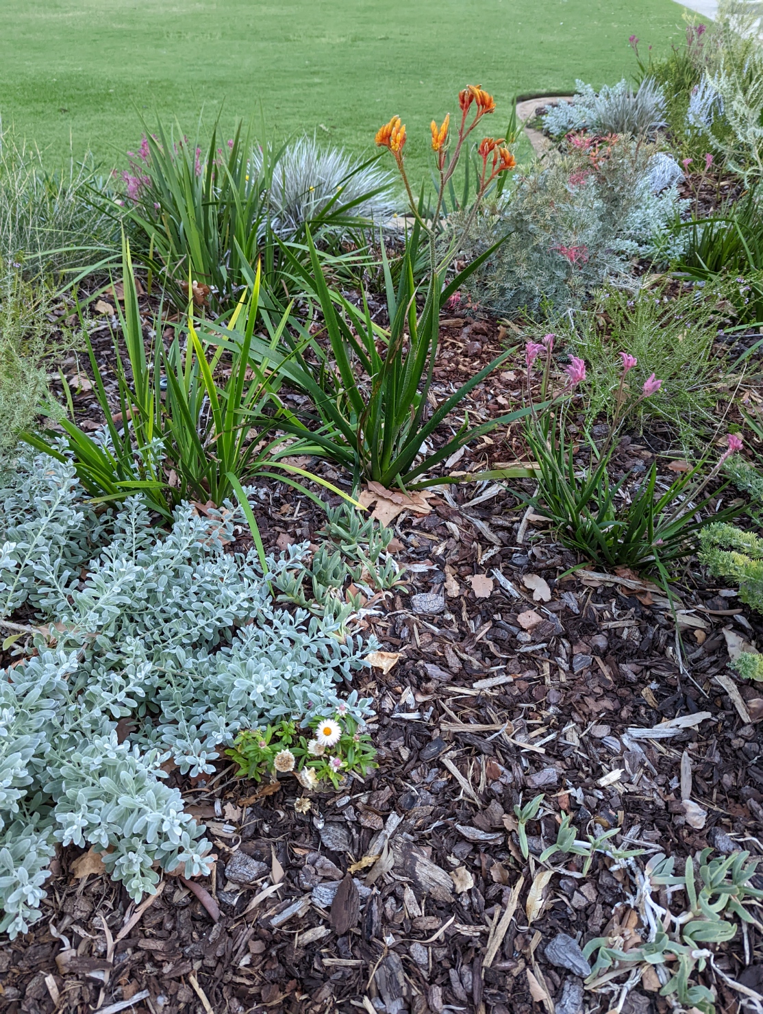 A walk down St Georges Terrace, Perth was familiar but new flower beds have joined the concrete kangaroos in the street scape.