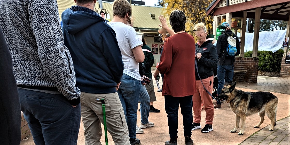 But, to go back to election day: the democracy sausages, cake stalls with political cookies, handing out how to vote cards, queues, candidates’ posters and Tshirts…and dogs.