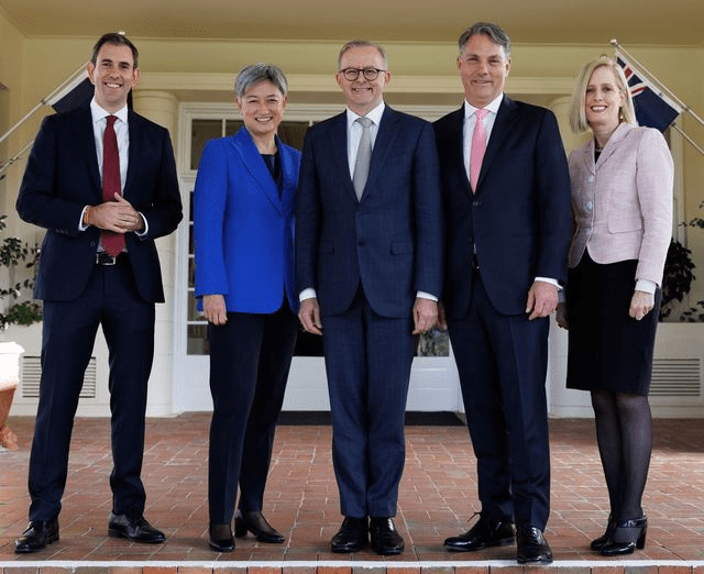 Four Labor Members were sworn in on the same occasion. Penny Wong , the Foreign Minister, accompanied the Prime Minister, Anthony Albanese, to the Quad meeting in Tokyo. Katy Gallagher is the Labor Senator from the ACT, and Finance minister.