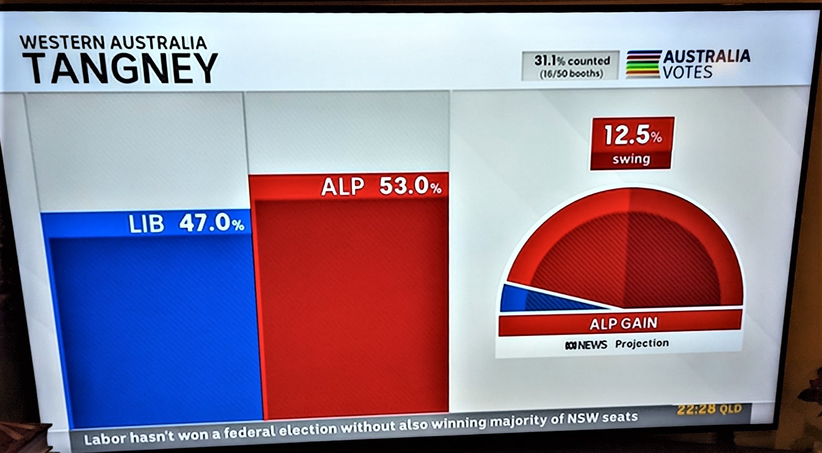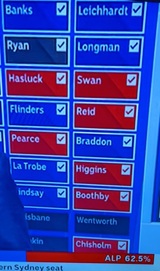 For my American friends – remember that Labor is red. The Western Australian results came in late in the night , but were marvellous. So many seats changed from Liberal to Labor.