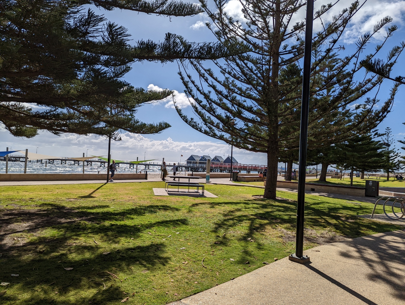 After the arrival in Perth, we had an evening to ourselves, before joining a tour to Margaret River the next morning. This was a comfortable trip with several stops on the way. One such stop was at Busselton, a coastal town with a pleasant beach and the trees familiar on various beaches along the Western Australian coast.