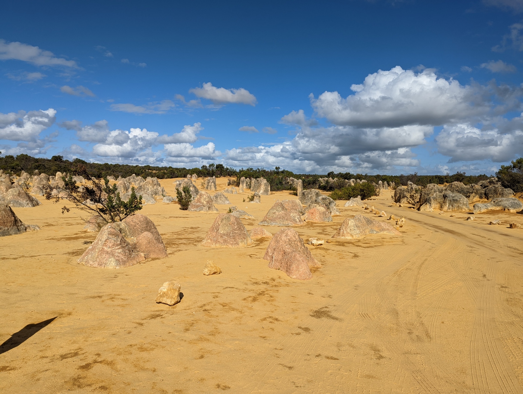 The Pinnacles walk was followed by another drive in the four-wheel drive to the sandhills. This part of the trip involved a lengthy deflating of the tyres before the ride over the sand dunes – and an even more lengthy inflating of the tyres for the drive back to Perth. Everyone was remarkably resilient and good natured about the latter!