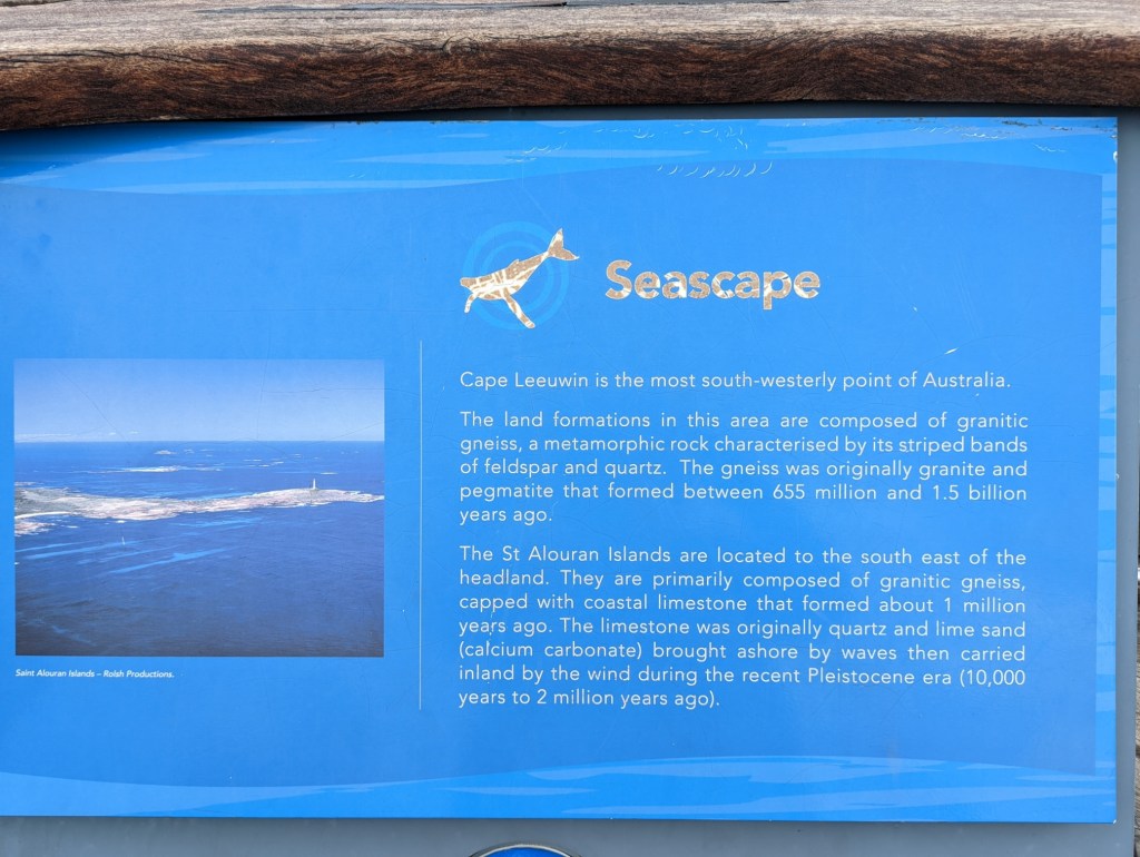 Cape Leewin is the most south-westerly point of Australia. The Southern Ocean and Indian Ocean meet here.