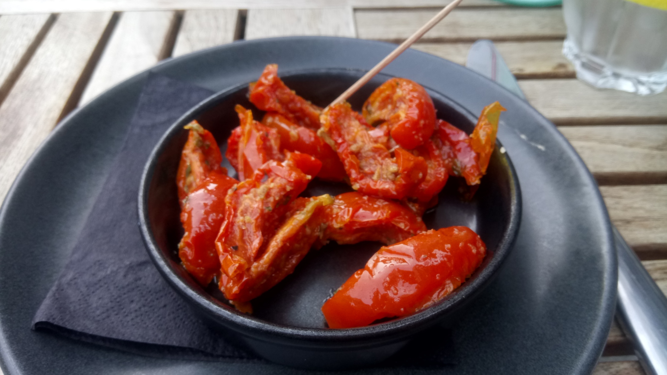 We order the slow roasted tomatoes with garlic and oregano (67 calories) and a Leggero Pomodoro pizza, with the hole in the middle resplendent with a green salad (573 calories). This was an excellent sharing menu for a fasting day on the 5:2 diet.