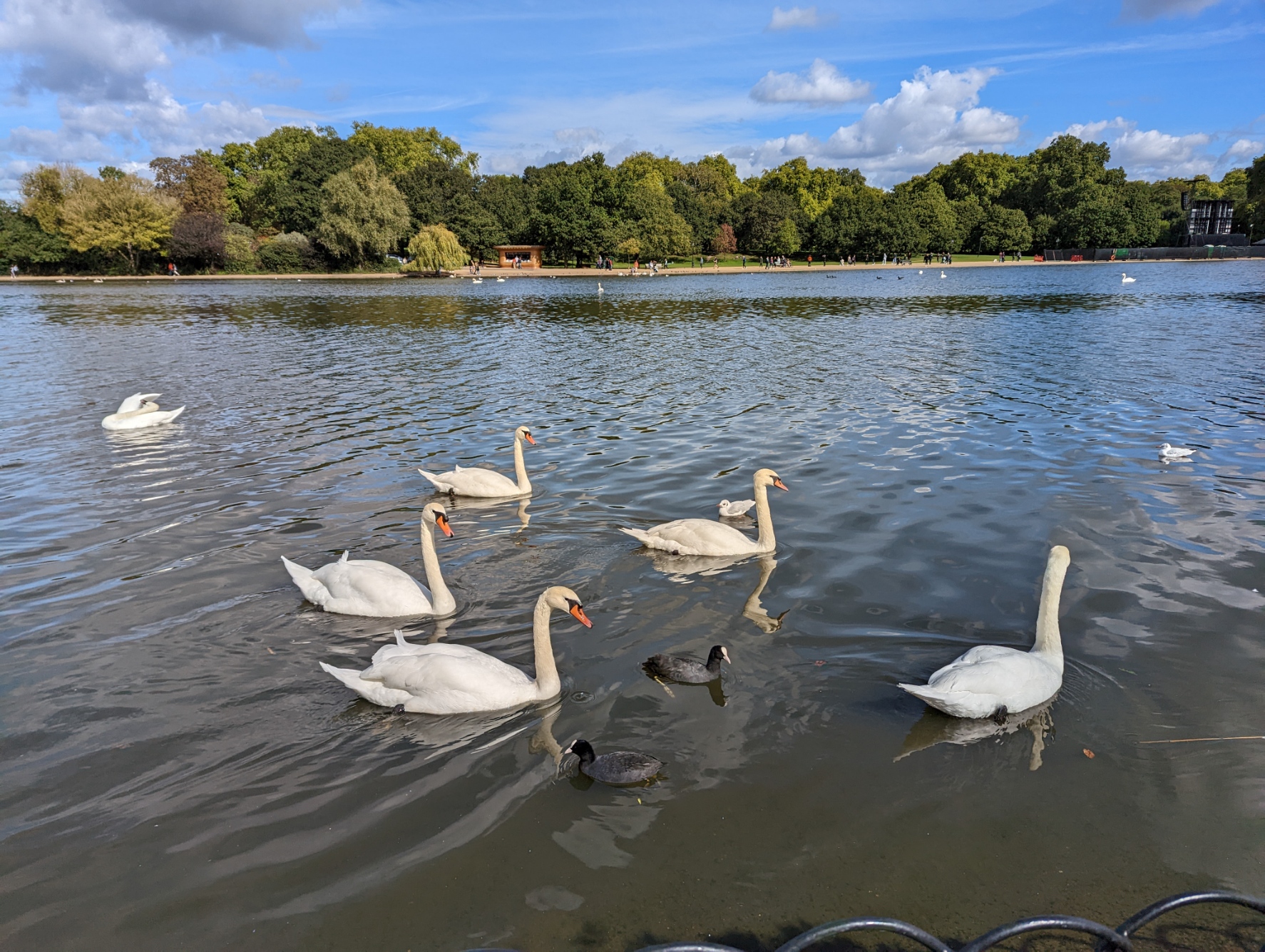 We were fortunate with our timing for departure on Sunday as flights were cancelled on Monday because the funeral of Queen Elizabeth 11 required clear airspace. A walk though Kensington Gardens was a familiar activity from our years in London and seemed a perfect way to end this visit. The Lido is an excellent place to eat, with an abundance of options, hot and cold, large and small. But most attractive is the setting. Walking through the park, past the Italian Gardens, viewing the Albert Memorial in the distance, and of course the many dogs walking and playing in the park is an absolute joy.
