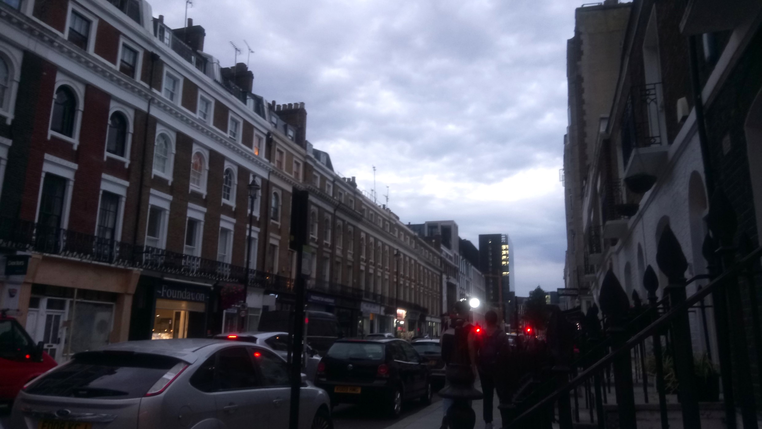 If sitting outside, the traffic is very close. However, the streetscape is pure London, and for me that was a deciding factor – I sat outside.