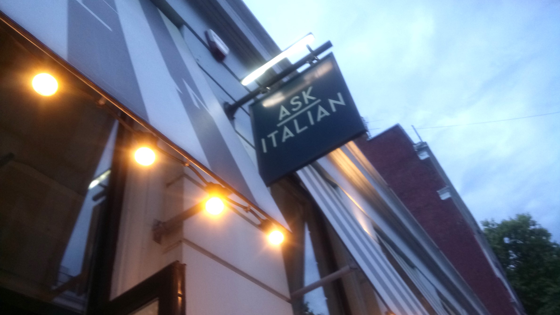 Ask is a chain serving Italian food. It is reasonably priced, the food is good, although not spectacular, and the service on this occasion was very efficient and delightfully friendly. I was pleased to be able to take away a bunch of the cheeky table napkins that I thought my grandchildren would find amusing. They are a great riposte to a person fixed on good manners to the detriment of enjoyment.