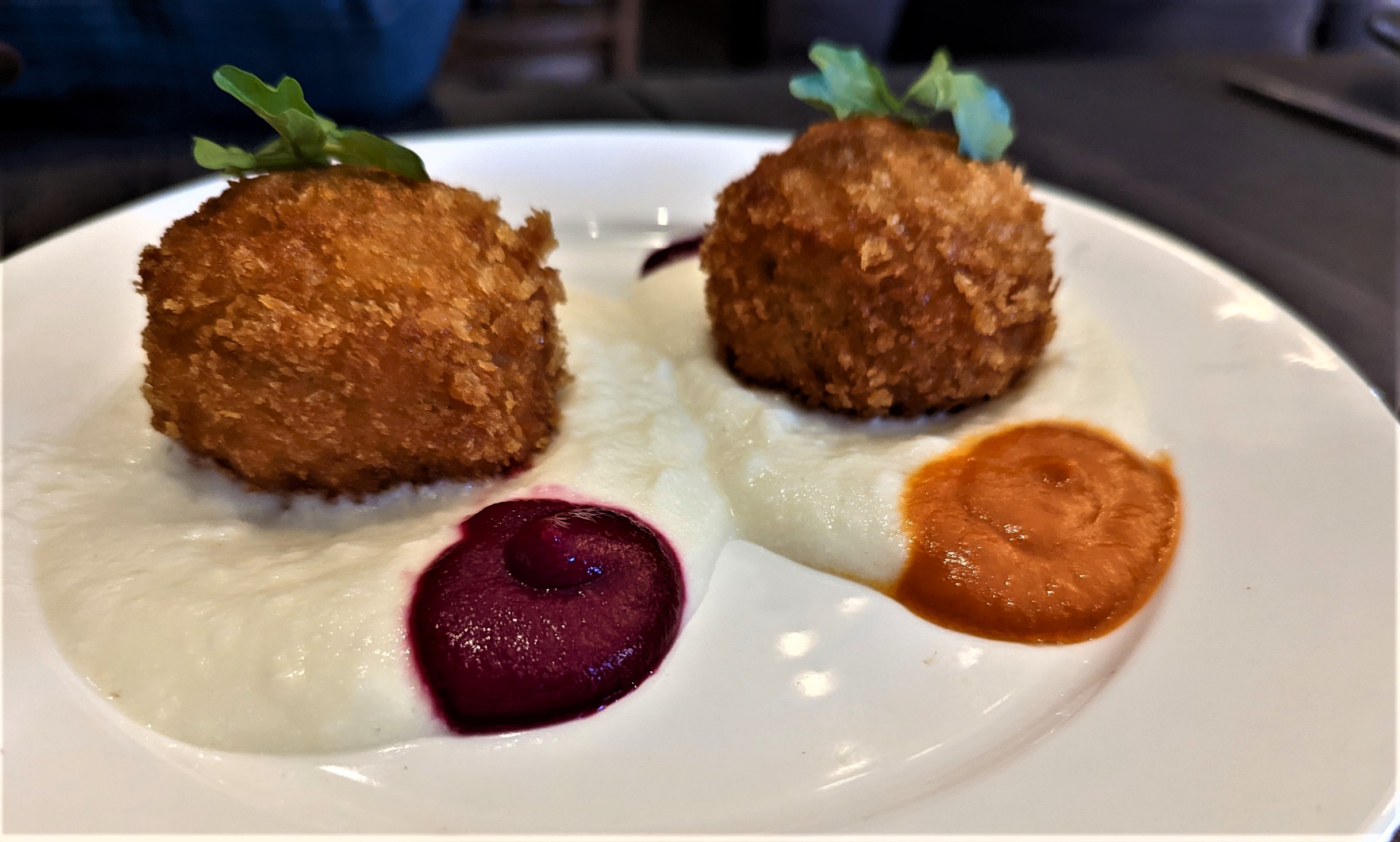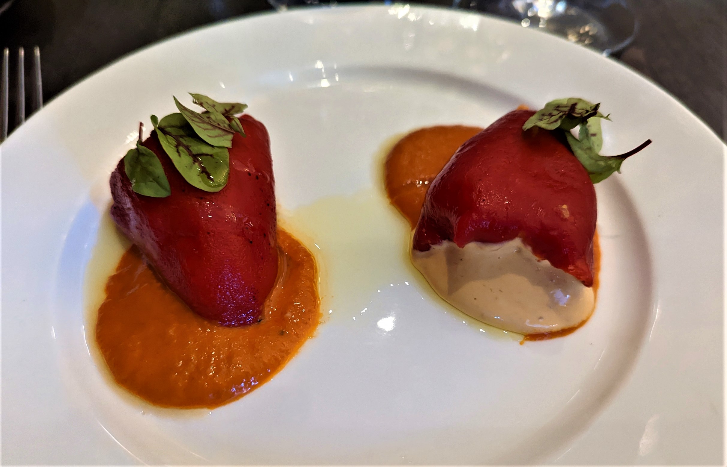 On the second occasion there was a little more variety. Everyone enjoyed their meals without reservation, and the complimentary sherries at the end were a lovely touch. The coffee was good, the mint tea served elegantly, and the chef’s taste of four desserts (we had one between two people) were a delicious and light end to an excellent meal. The halloumi salad, lamb croquettes and pork dishes were new to us and appear with the familiar stuffed peppers below. Another excellent tapas is the semolina rolls, not pictured this time.