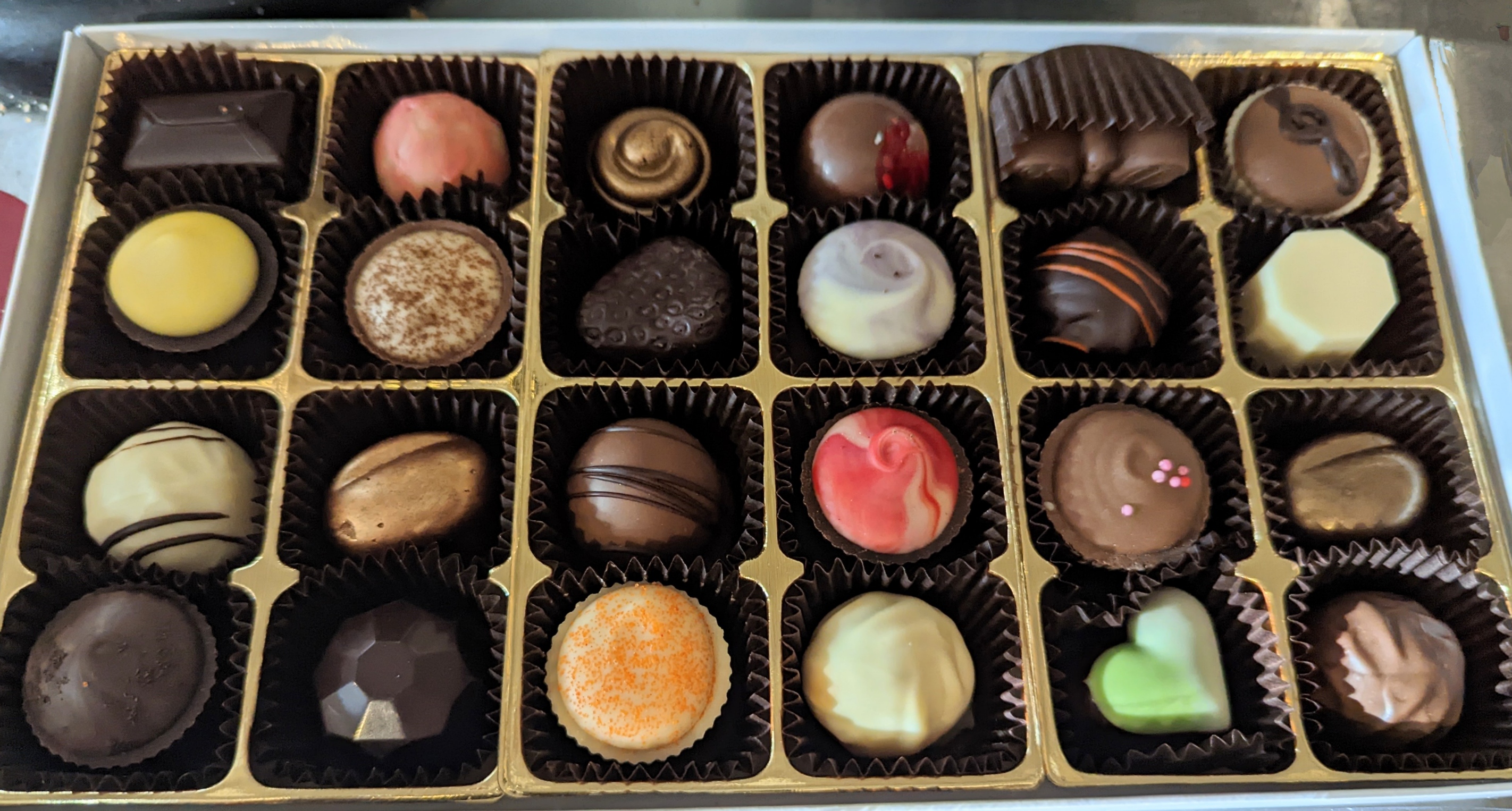 An elegant finish to this meal was enjoyed at home with part of a birthday gift. The wine, another gift, will be opened on another occasion.