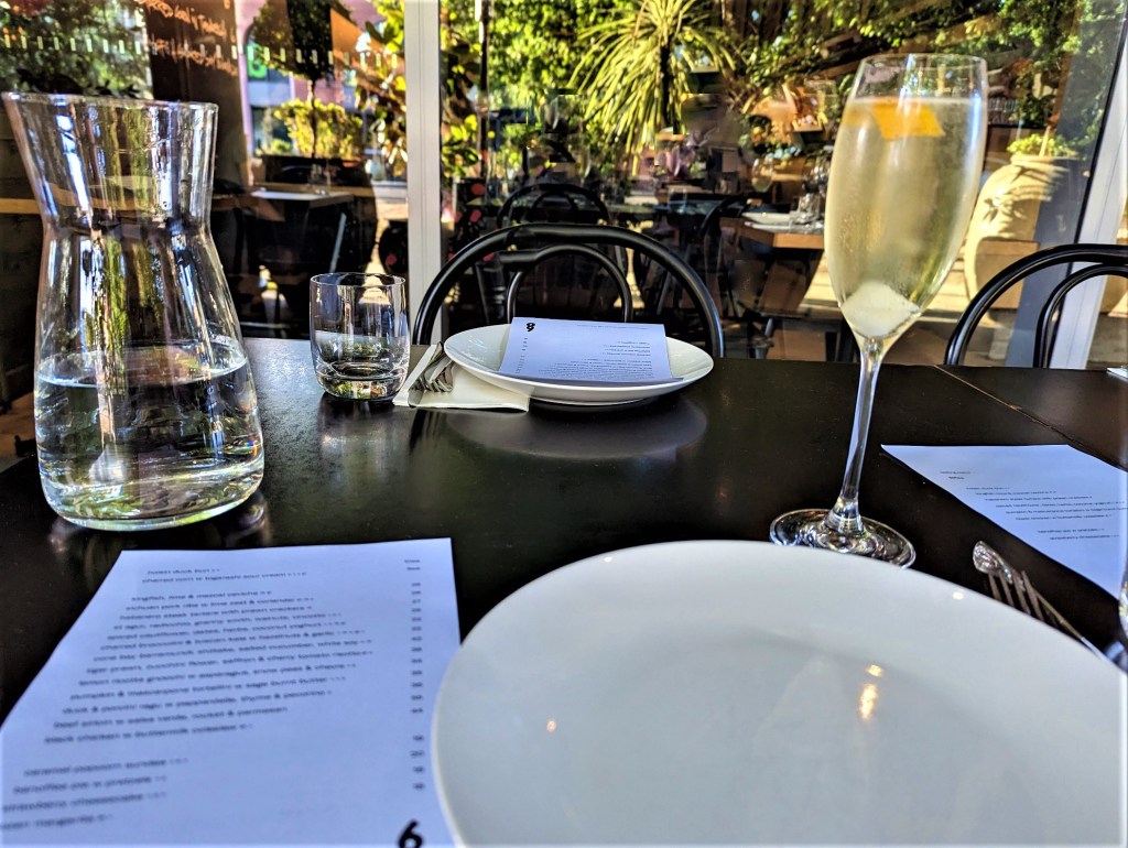 I was pleased to be able to book 86 for four people at an outside table on Tuesday night. We had a pleasant table, with foliage almost hiding the road, comfortable seating, and not too crowded. Unlike the inside seating in an atmosphere that is often noisy, we were able to talk peacefully (but animatedly) for over three hours.