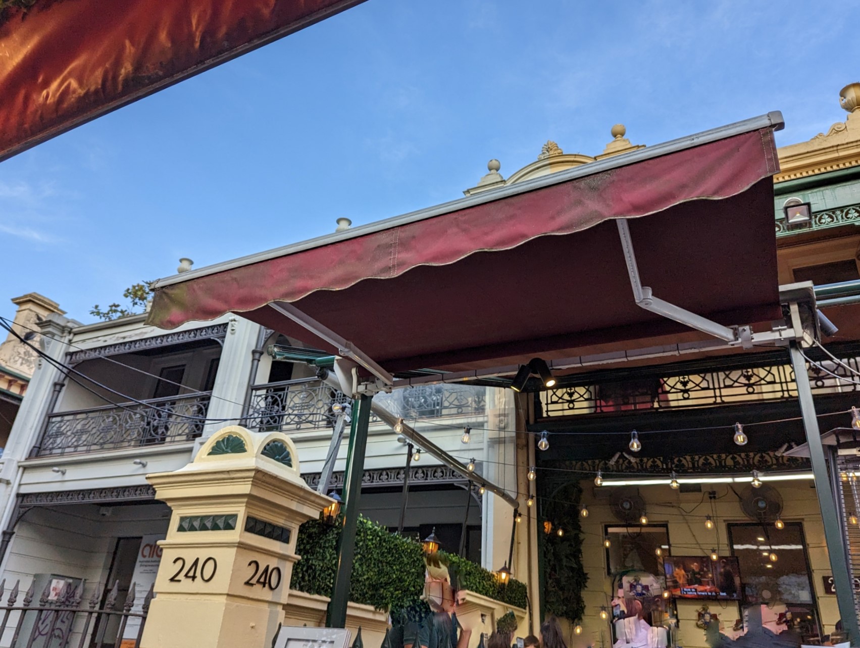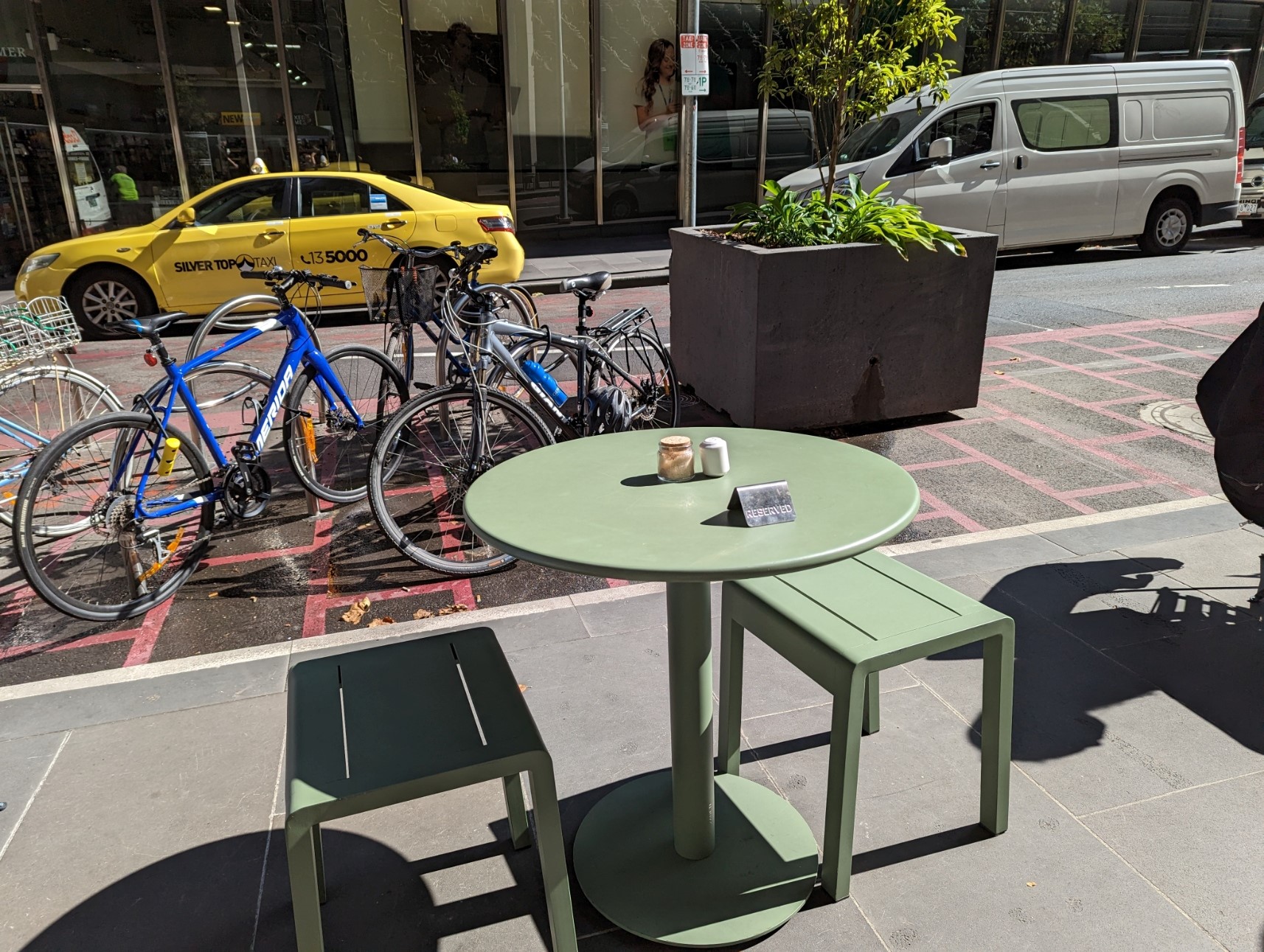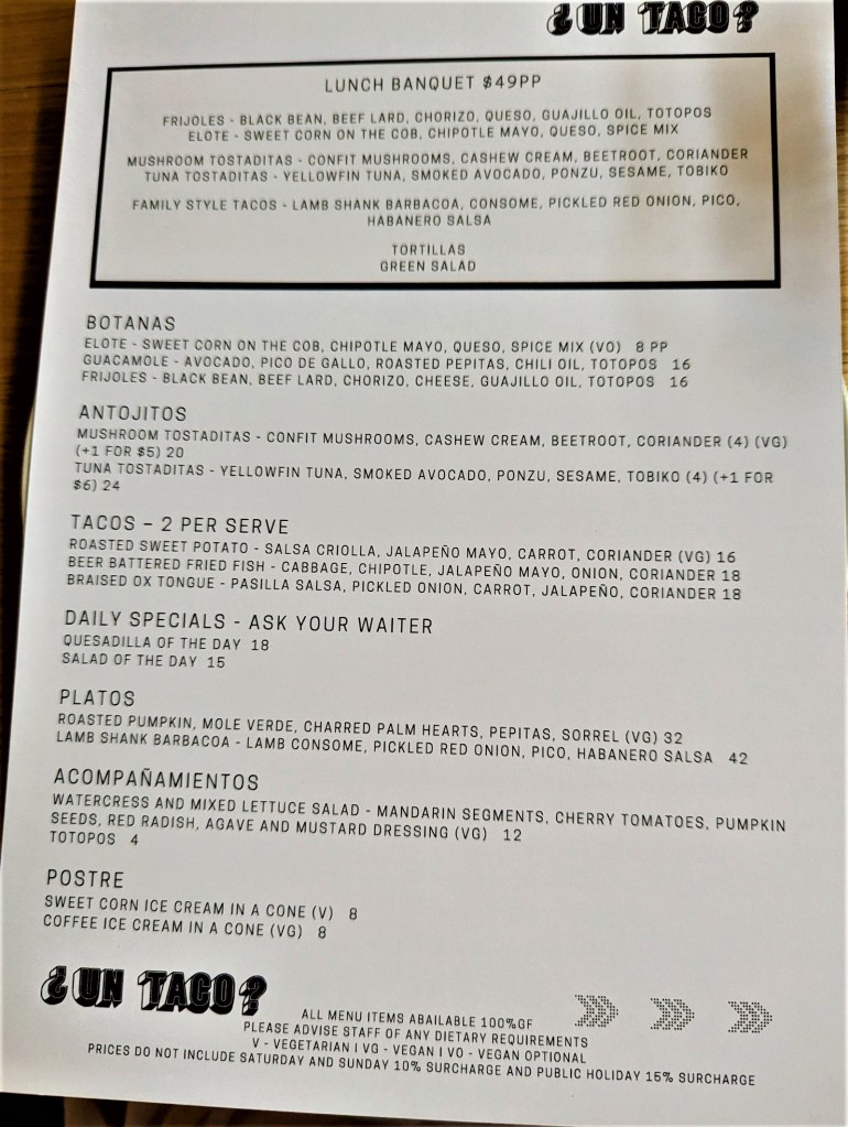 Mamasita is in Collins Street, and a wonderful find. If you do not want to sit at high table on stools, I think that might be accomplished by booking well in advance and stipulating booth or table seating. We were on stools, but seemed to be amongst the last to leave at lunchtime – everyone else might have been hurrying back to work, but it does suggest the seating was not too uncomfortable. Of course, the conversation was scintillating which had an impact.