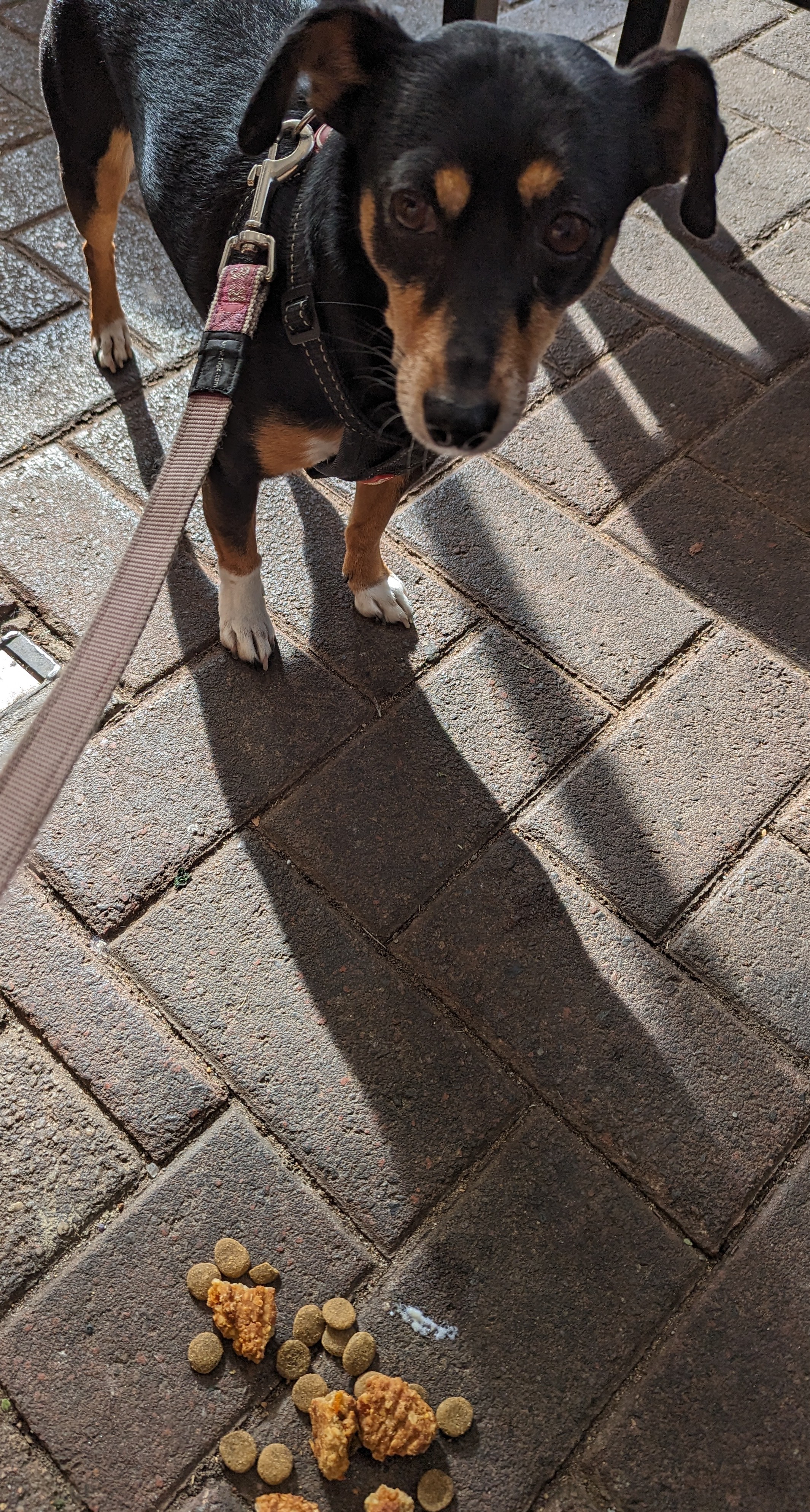 Edgar’s options were very nice indeed – creamy scrambled eggs on nicely buttered sourdough for one and a warm scone with jam and cream for the other. The latter would have been improved with thick rather than whipped cream. However, nothing was as deserving of the pained looks from Leah. She clearly disapproves of her home baked apple and peanut oat biscuits, and kibble! Even the froth from Edgar’s coffee was licked up half-heartedly with some remaining on the ground.