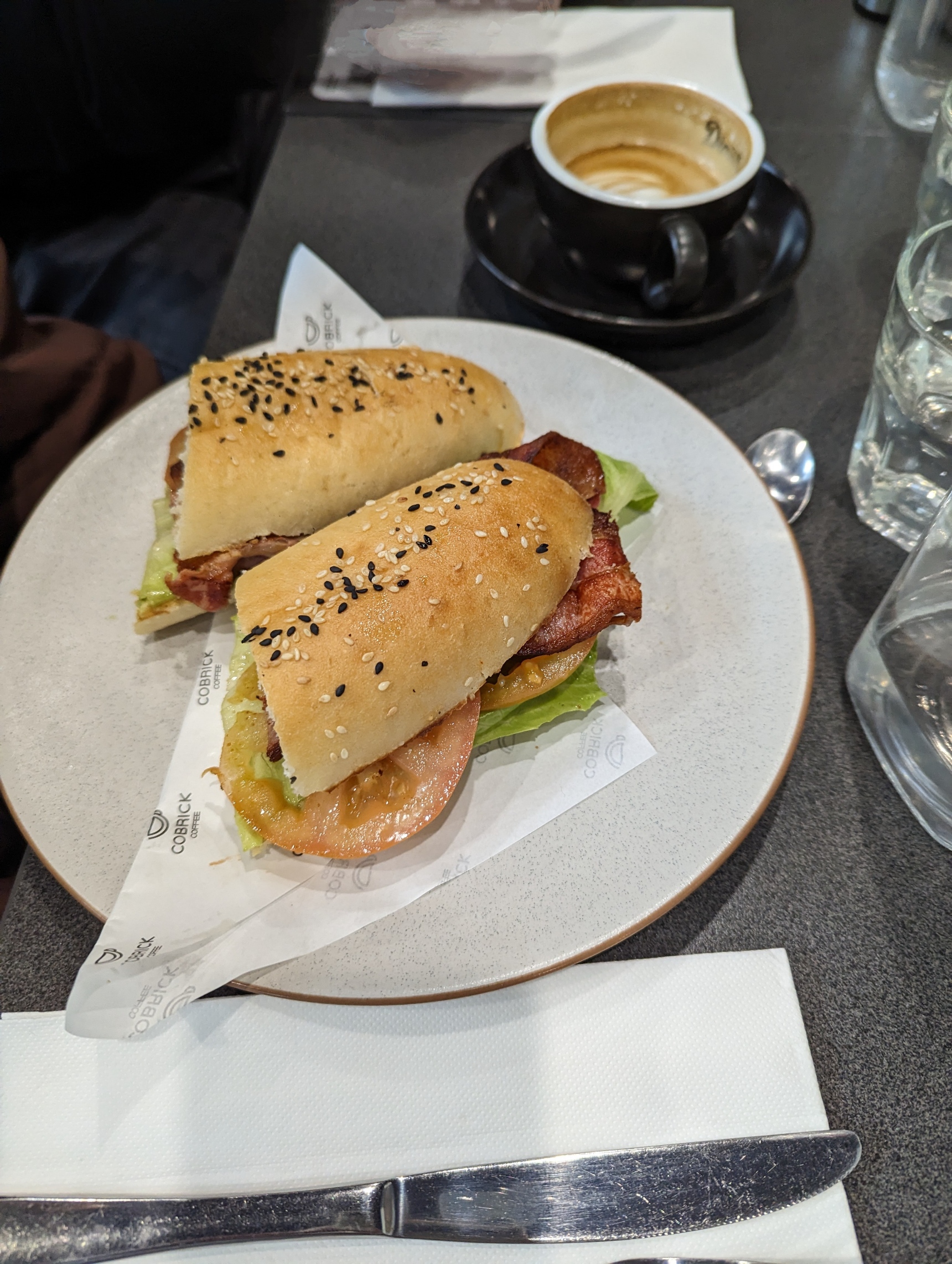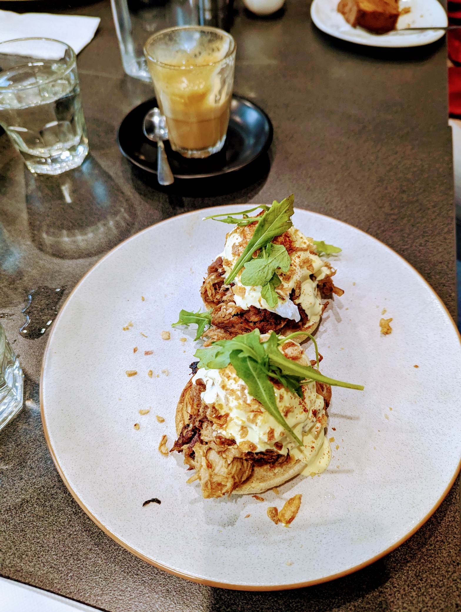 The food was substantial, and the service efficient. Although the range of pastries was limited to the usual almond croissants, banana bread, and pumpkin and walnut bread, they were very good indeed. The breakfast meals were nicely cooked and presented. They were beyond the usual cafe fare, with a tremendous breakfast bagel, and a lovely eggs benedict amongst the offerings.