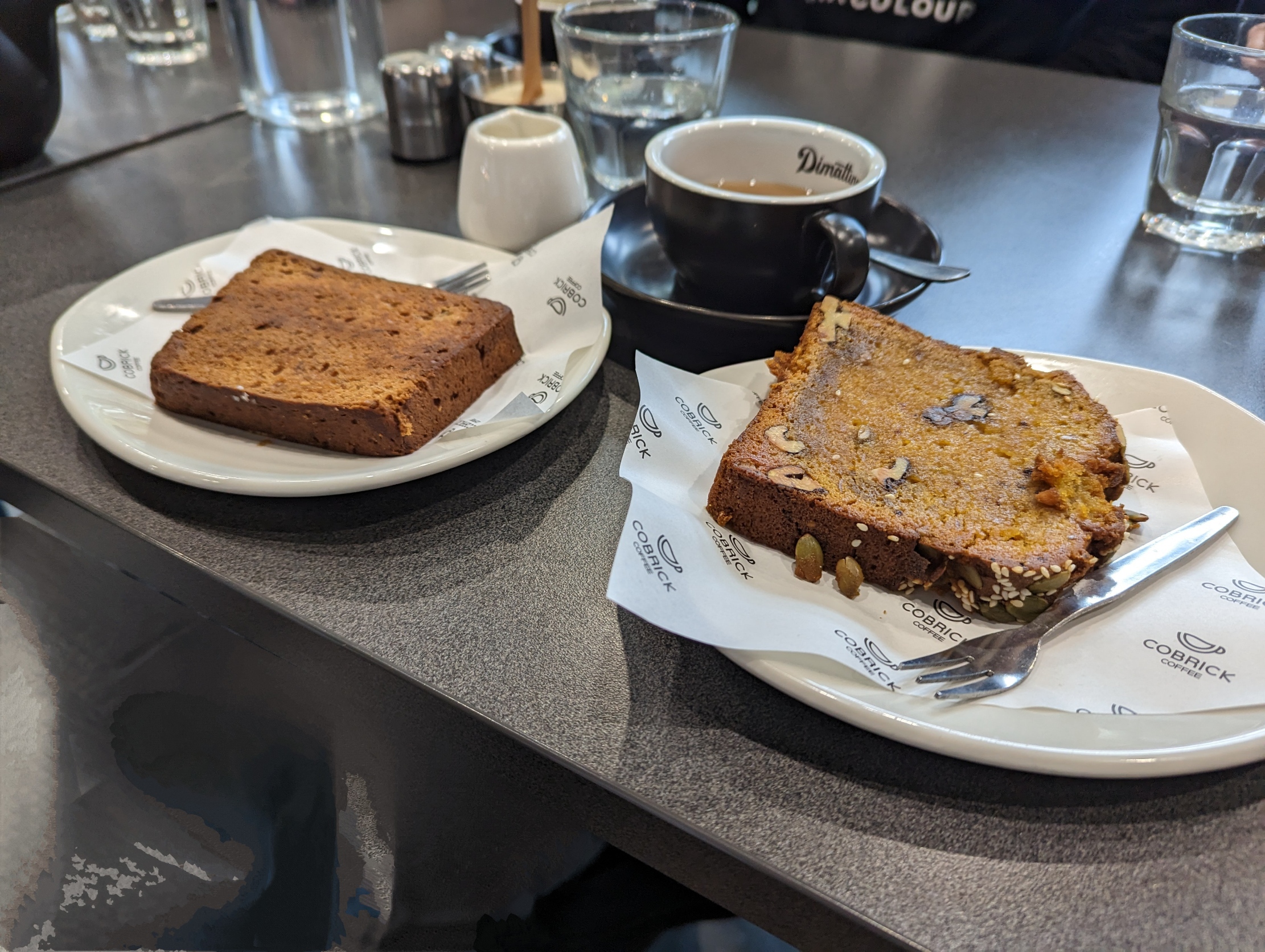 This cafe has a cosy section entered through the mall, and a light and lovely section with huge glass windows which can be entered from outside. We enjoyed the later, with its sunny spots interspersed with a few raindrops. And why should we have expected anything different in Melbourne?