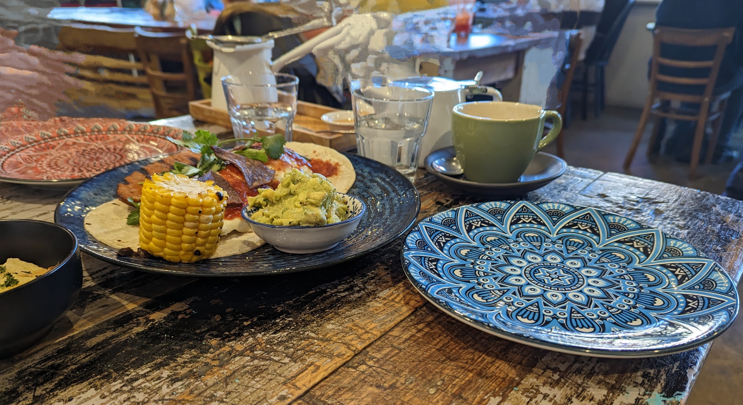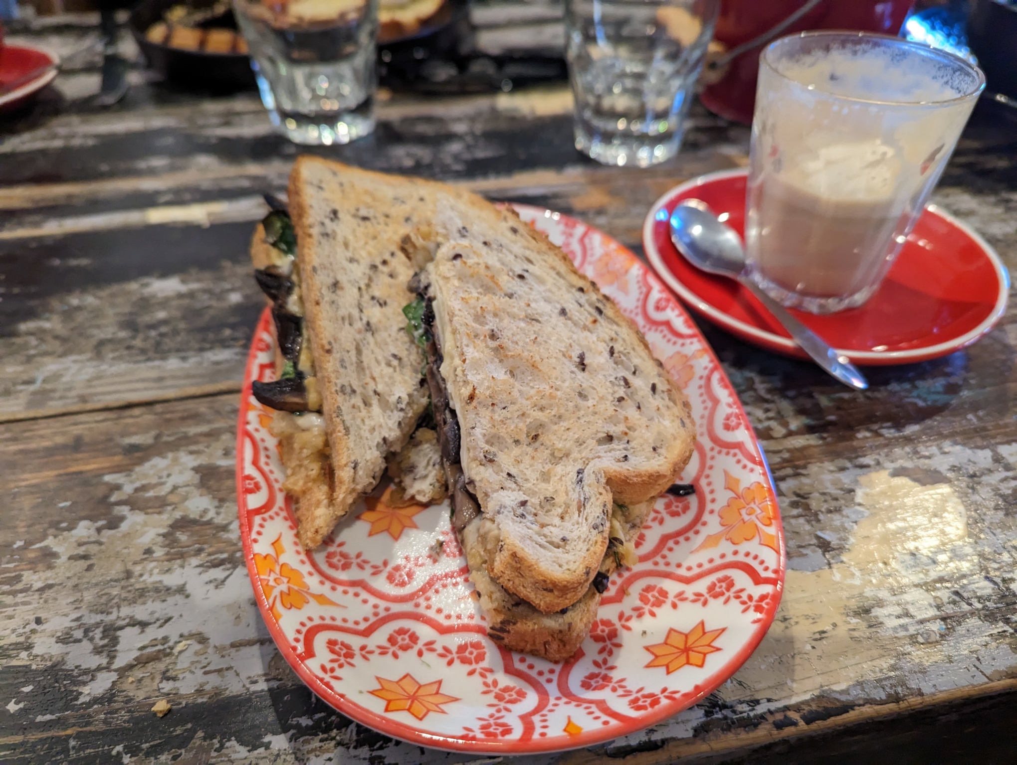 This is a lively eating place with a large and interesting menu. The coffee is good, the meals substantial, and the service competent and pleasant. The large breakfast and the Mexican inspired meals were the most interesting. However, the kale addition to poached eggs was a nice innovation, and my mushroom toastie resplendent with mushrooms.