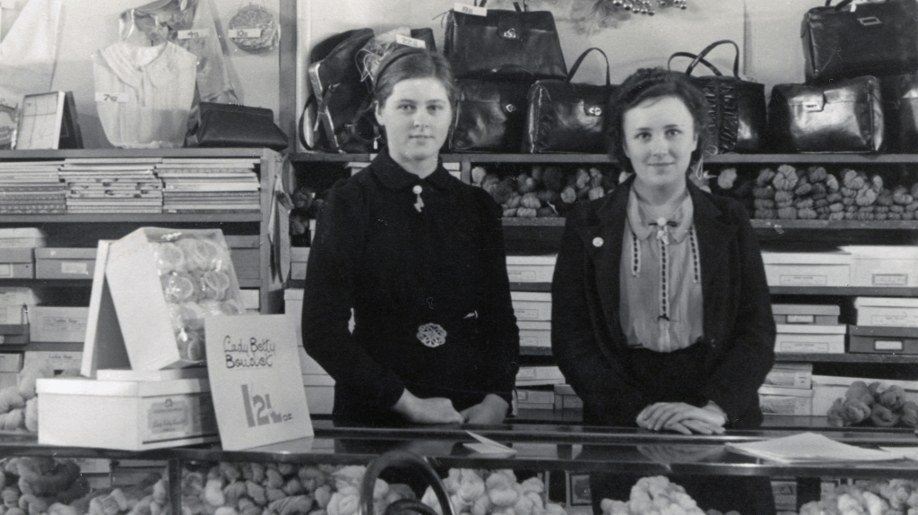 Joyce Grace and Joan Eldred at work at the draper C. Winn in Ashfield in 1940.