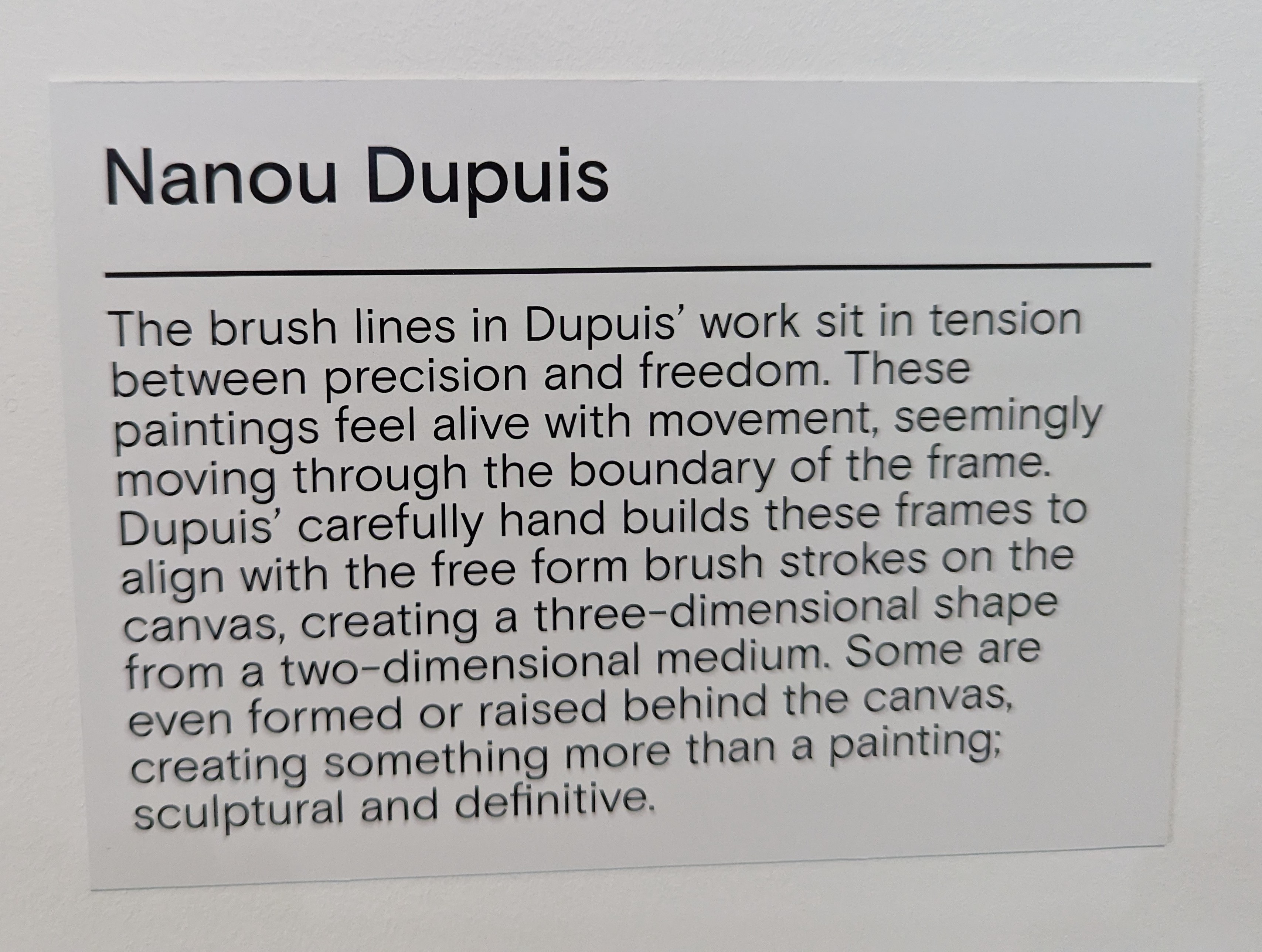 This gallery is light and bright, with its innovative exhibition well displayed and signed. The staff member at the door was pleasant, entry is free, and there is an informative catalogue.