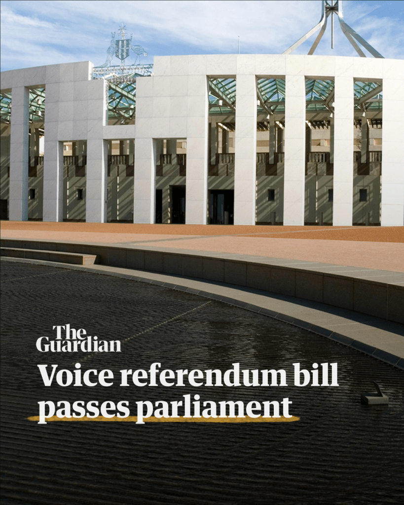 Is the Australian’s clearest contribution to the debate its headline? In February, the website run by Fair Australia, the name under which senator Jacinta Nampijinpa Price’s Advance is campaigning against the Voice, advertised its plans to “build an army of Aussies” to “defend our nation.” Now, told by the Australian that most “Aussies” don’t intend to vote Yes, the undecided may draw some reassurance that it’s okay to vote No. •