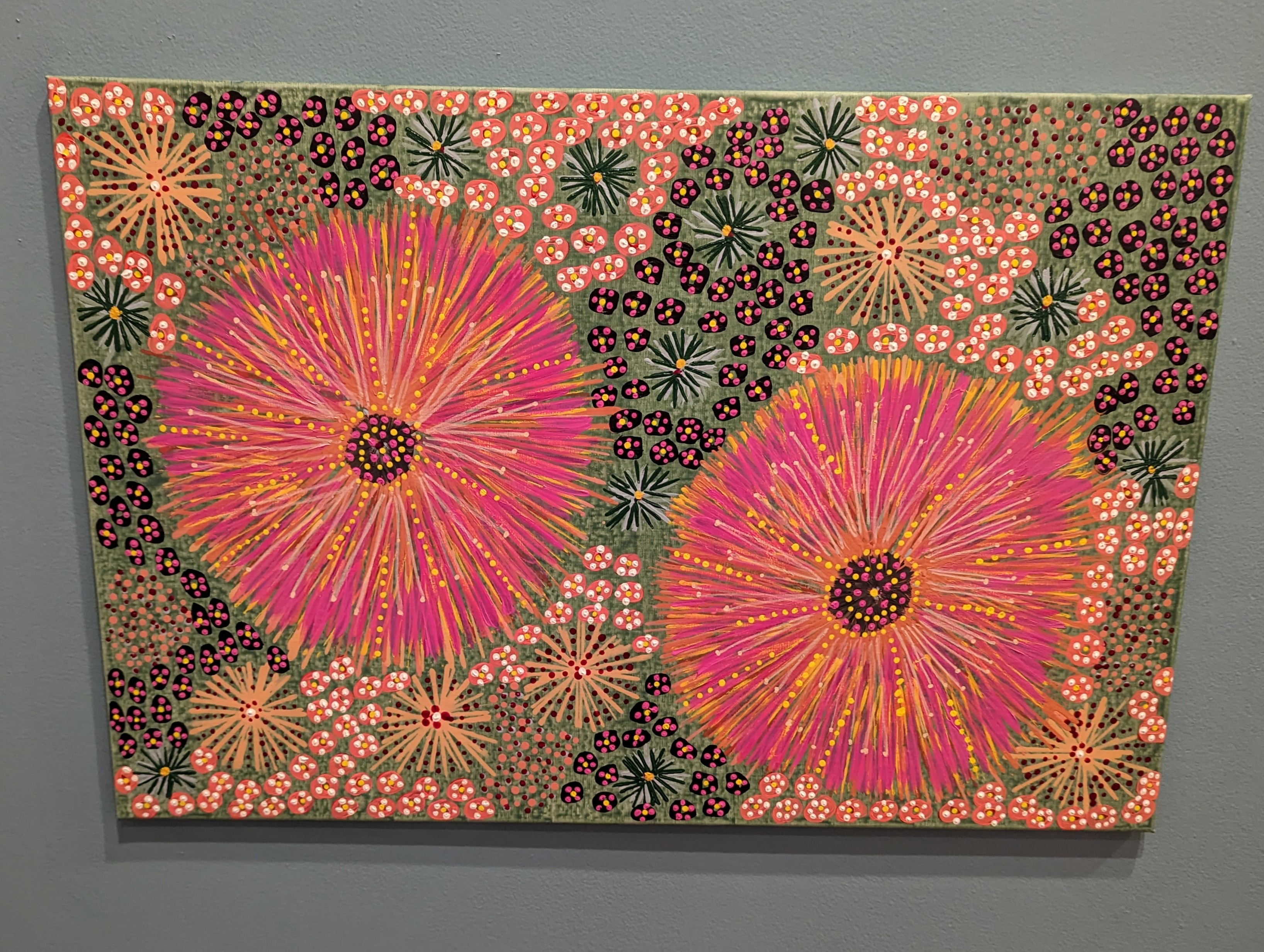 I visited the Fremantle Arts Centre with a friend with whom I worked at the Western Australian Correspondence School in the early 1970s. There we illustrated the books that were used by high school level students in remote areas in Western Australia. Teachers who had retired from the classroom wrote the material. We were in a large room with windows across the wall against which our desks were placed. Plenty of light for our endeavours, and plenty of space for us to chat without disturbing the two teachers with whom we shared. Our work was in pen and ink with plenty of cross hatching from recall. None of the glorious colour we observed in our wandering around the Fremantle Arts Centre exhibition.