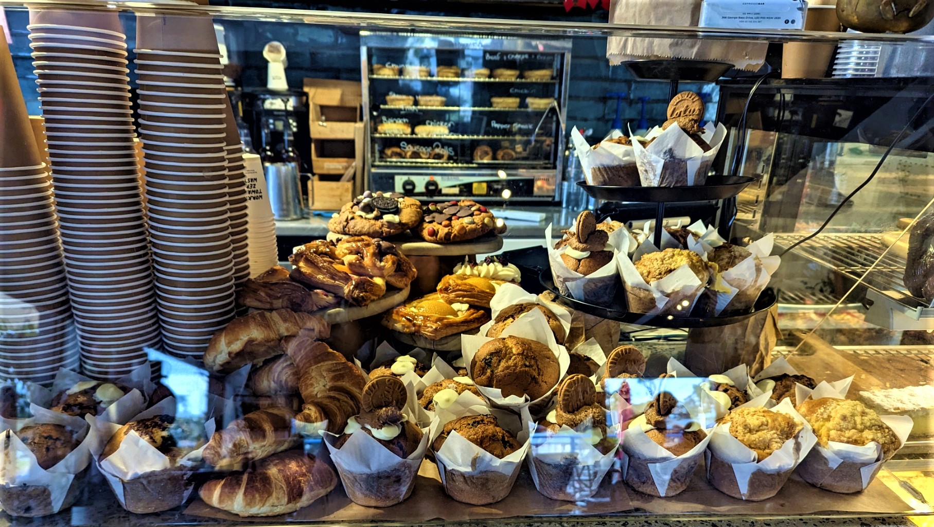 The variety of pastries at Three 666 Espresso Bar is amazing. We had a splendid breakfast there with good coffees before beginning our travel homewards. This cafe has a large menu offering cooked meals, and a large range of sandwiches and rolls. A huge breakfast here is a must for each visit to Lilli Pilli (although we did not indulge on this occasion because we needed to be on our way, two might be needed on our next visit). The outdoor wood fire was a lovely touch.