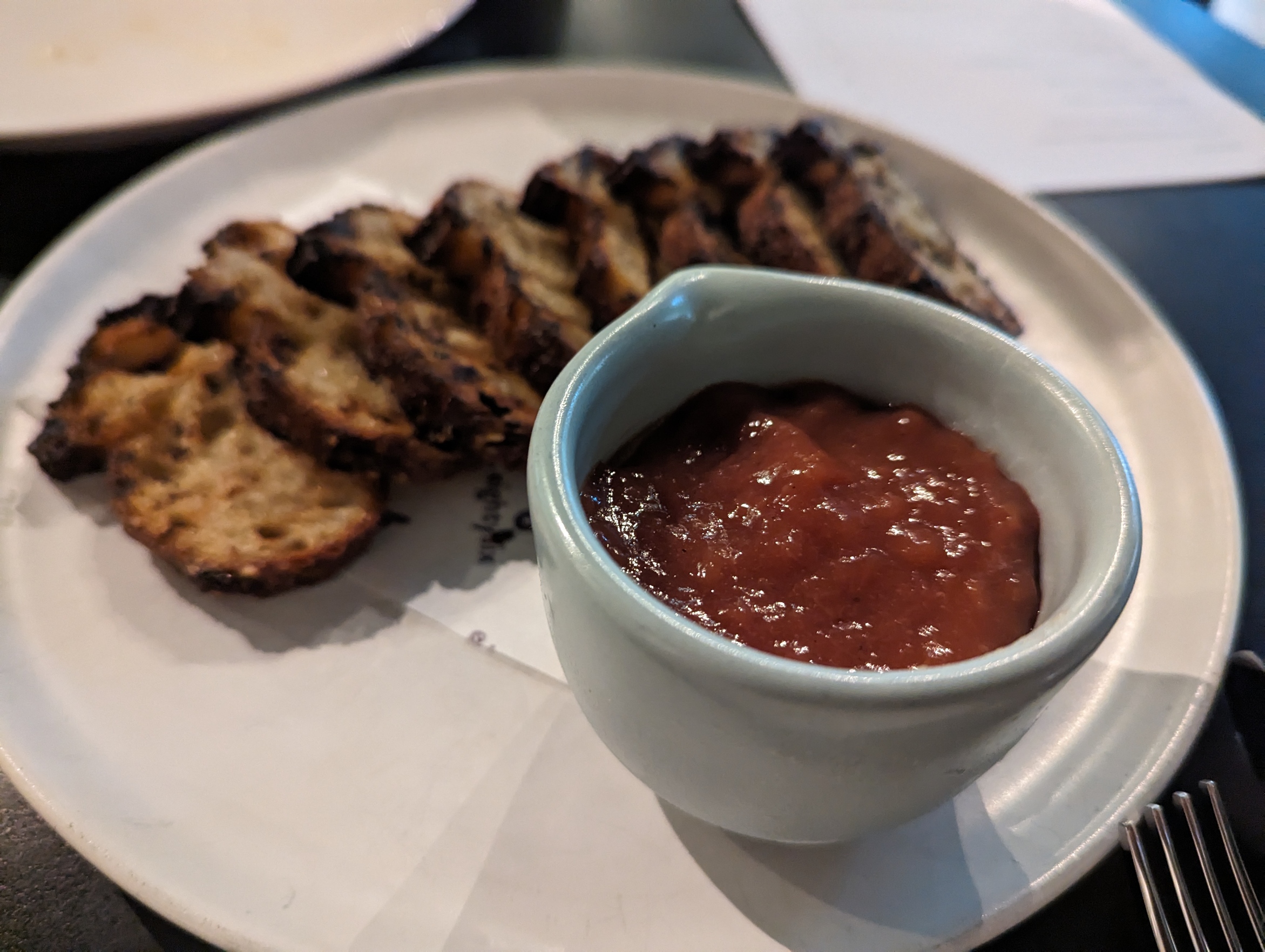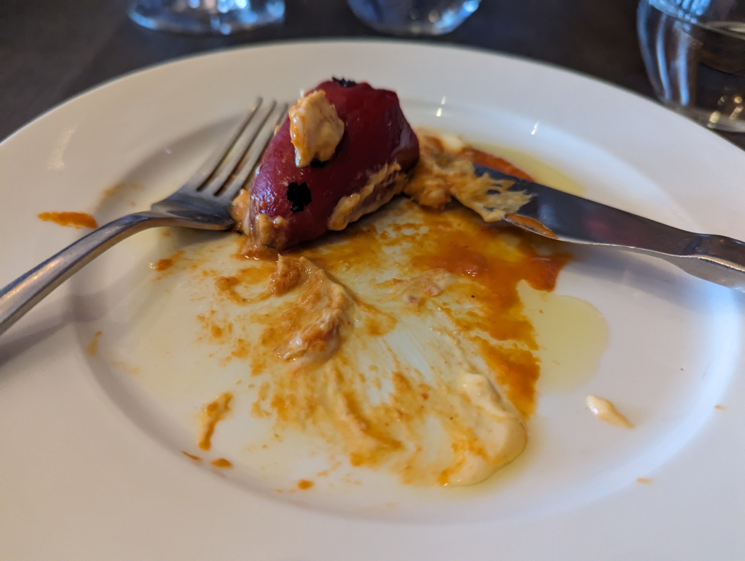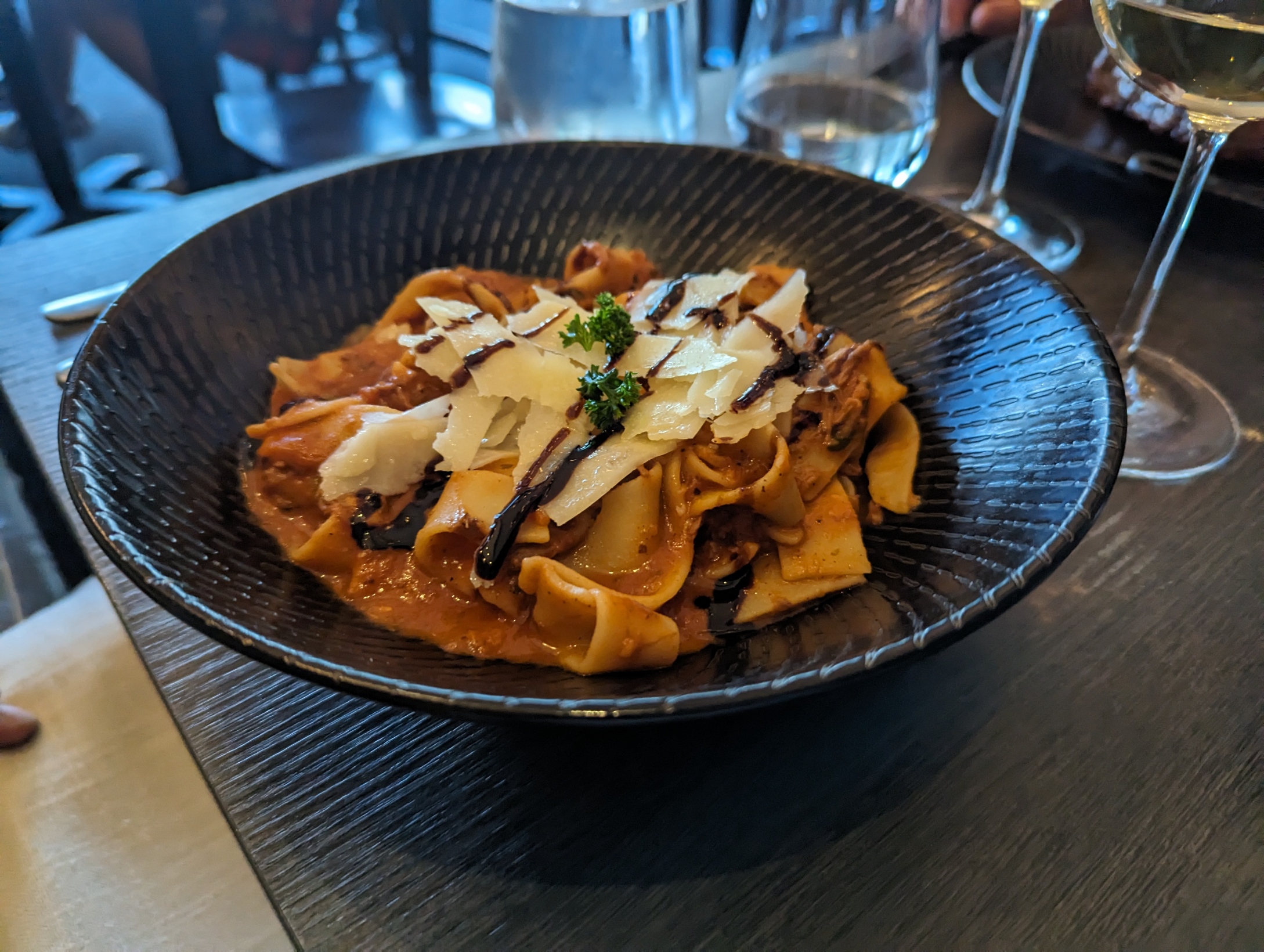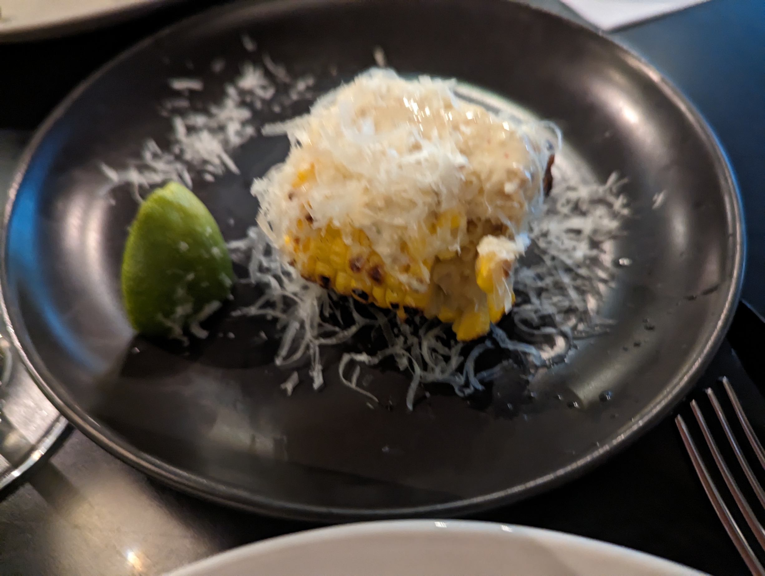 It was so good to return to 86 Northside and see that the delicious eggplant dish has returned to the menu. We chose four dishes to share – one too many, so once again, no dessert. My favourites were the sweetcorn cobs with a delicious sauce and finely grated parmesan, the Szechuan eggplant with chili caramel sauce, and the pumpkin mascarpone tortellini with burnt butter sage sauce. We also had chicken parfait with peach jam and toast and cauliflower with what tasted like a garlic and lemon sauce served with toasted hazelnuts.