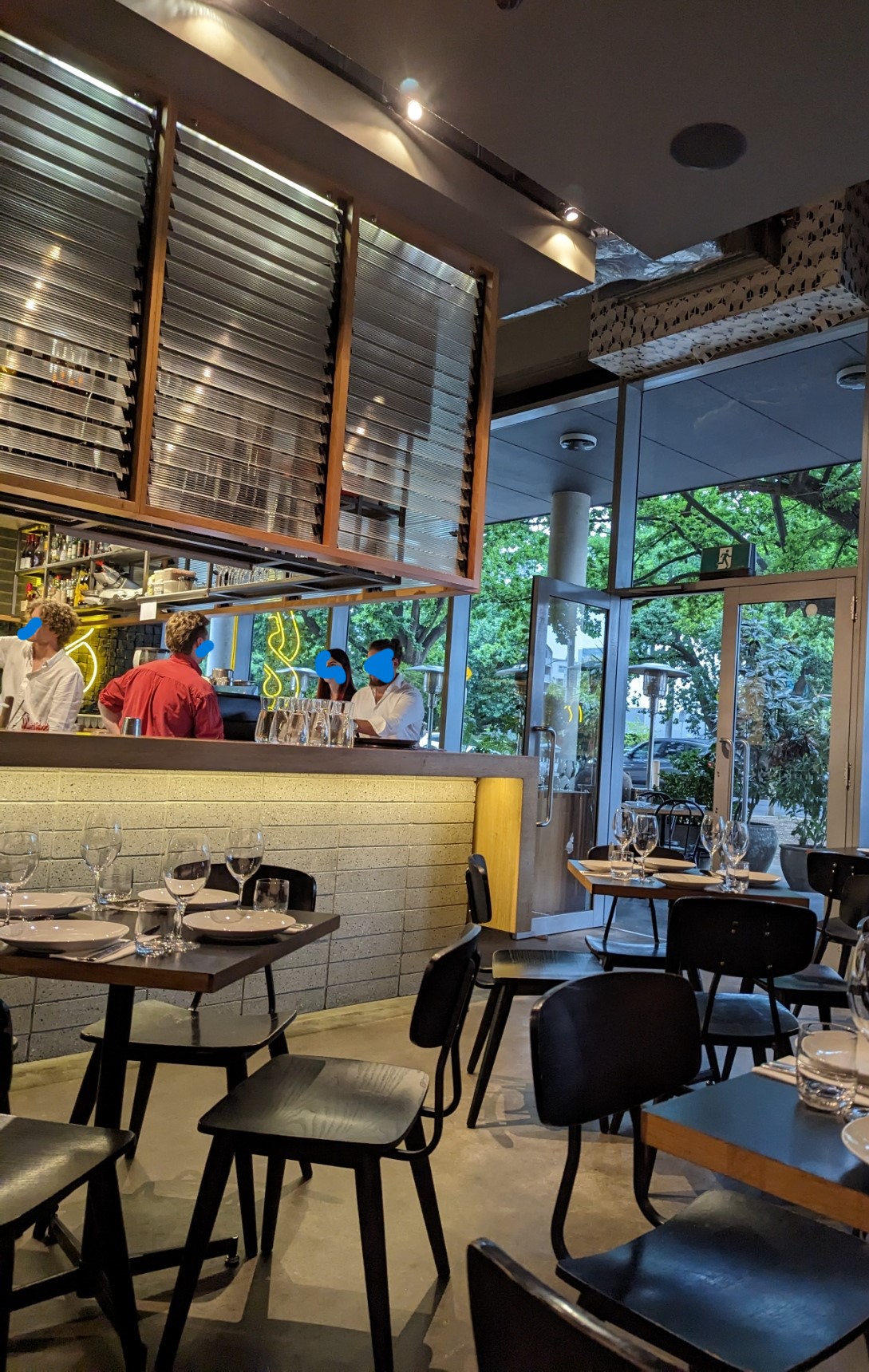 86 has a large staff, all of whom are alert to the diners so that there is never a wait for anything except for the appropriate timing between the delicious courses. The atmosphere is friendly, and tonight there was less noise than usual. Perhaps arriving at 6.30 on a Friday night is a good option as the larger parties arrive later. The seating is comfortable, the tables close, but not too close, and the venue nicely lit. People were seated outside but were safe from the rain which makes this a good option.