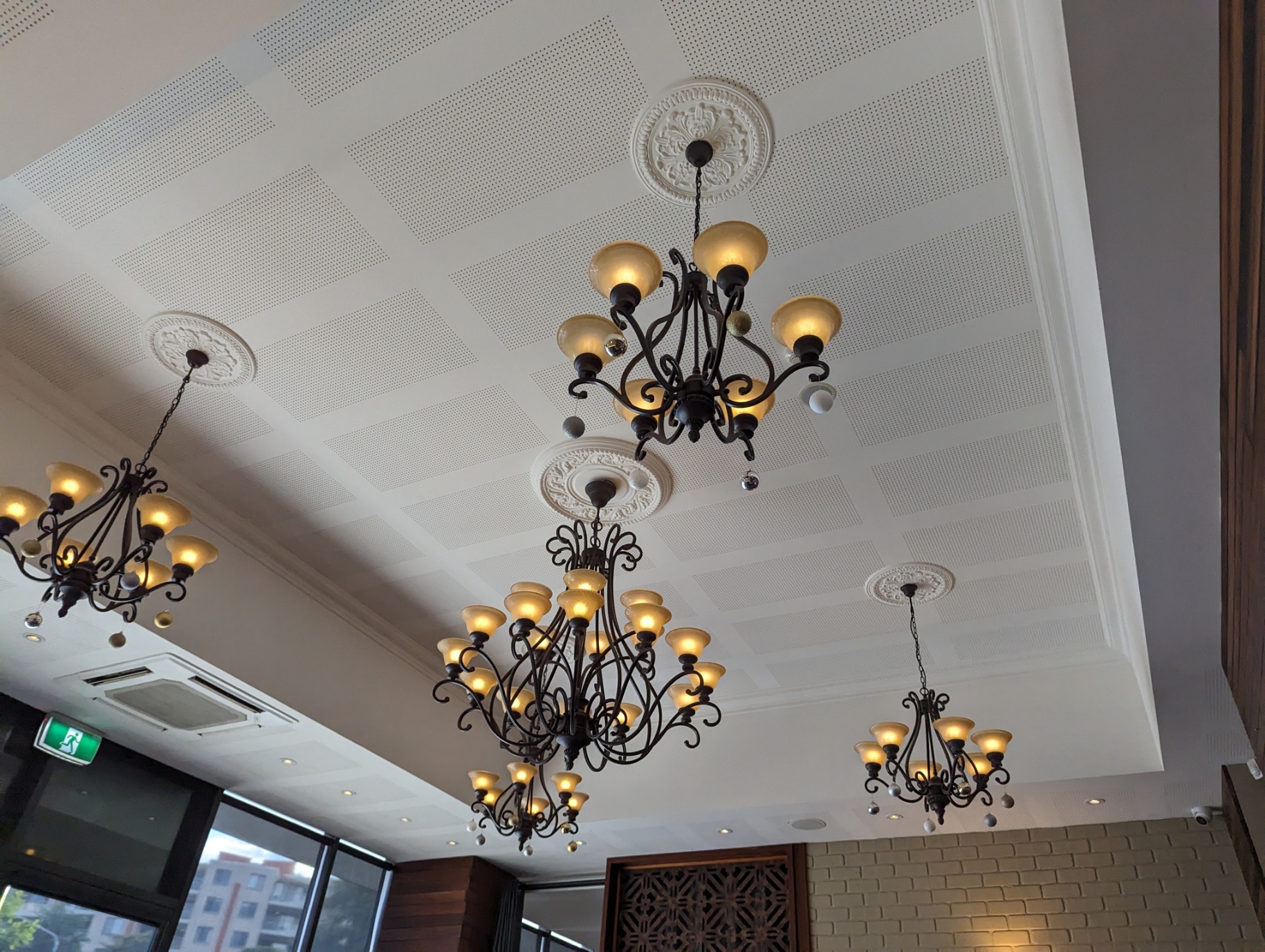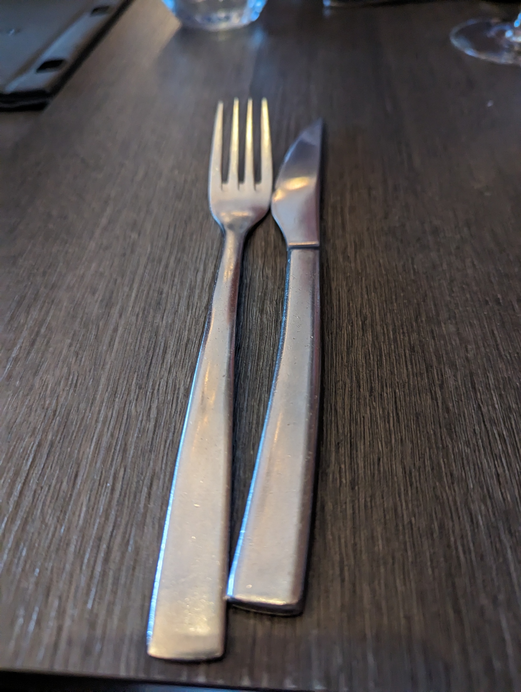 Most of the space is softly lit with chandeliers. However, the former tapas area is not so attractive with its brighter lighting. The seats are comfortable and the tables the right size for conversation. New, appropriate cutlery is provided for the mains. Table napkins are fabric.