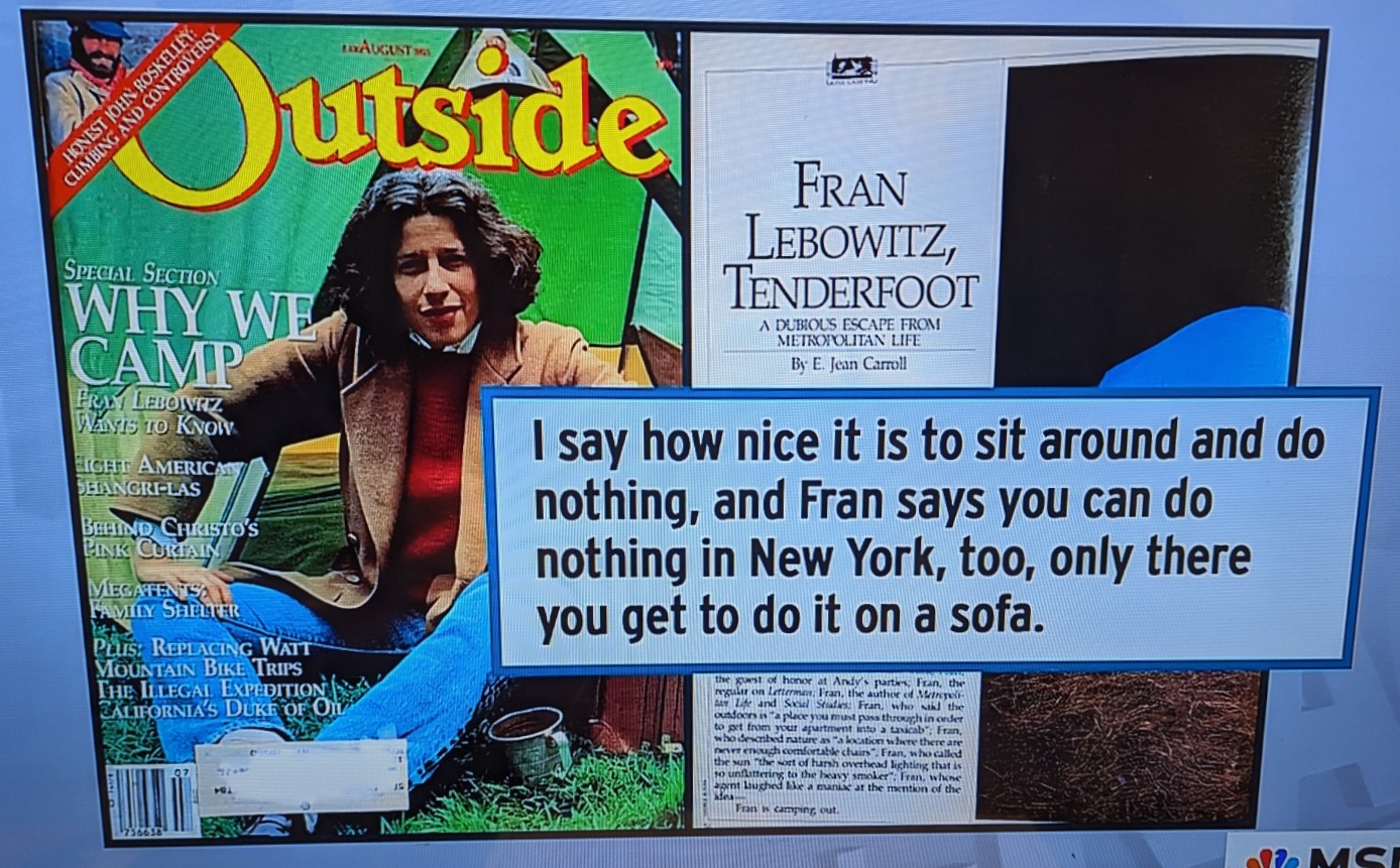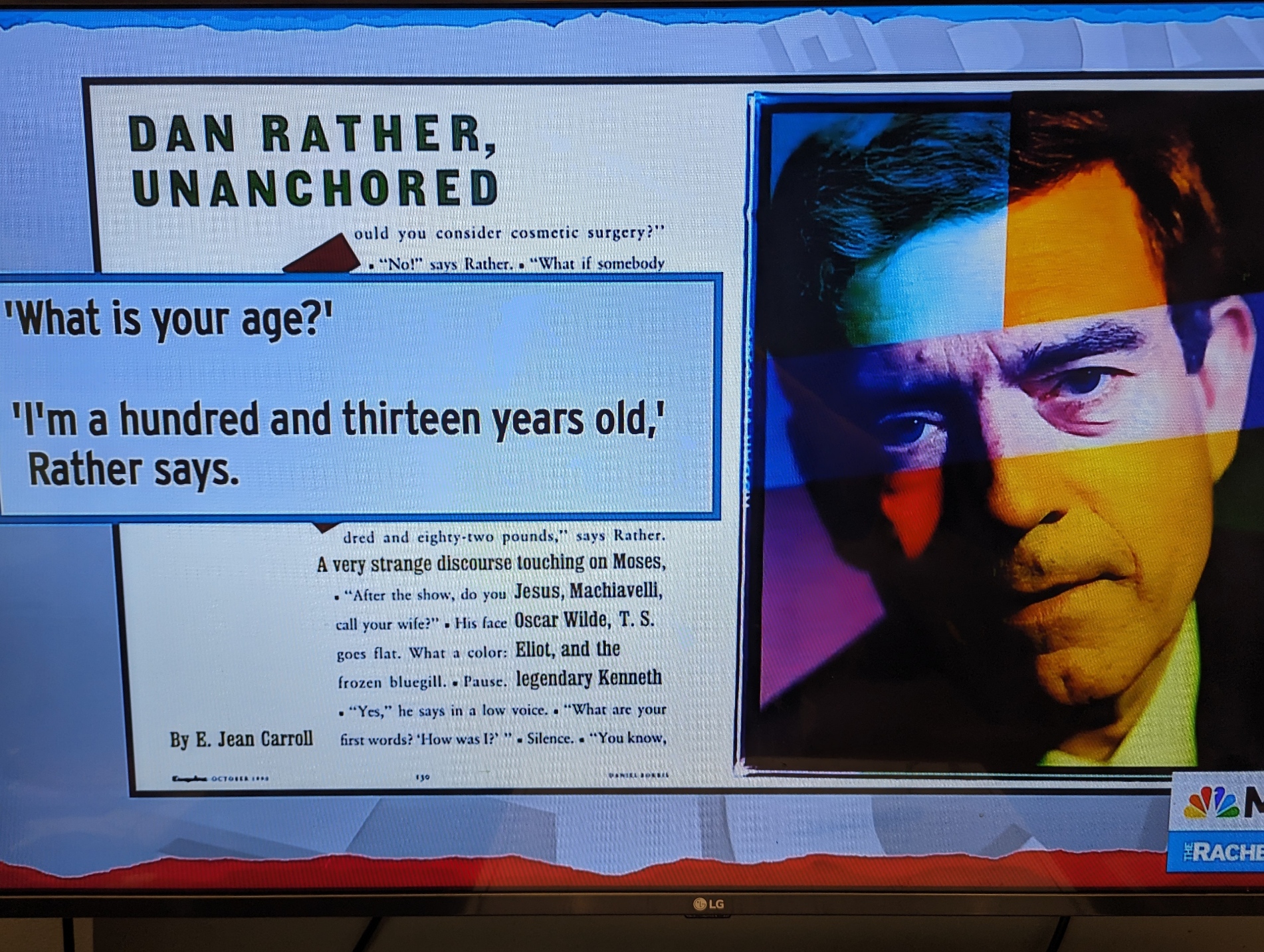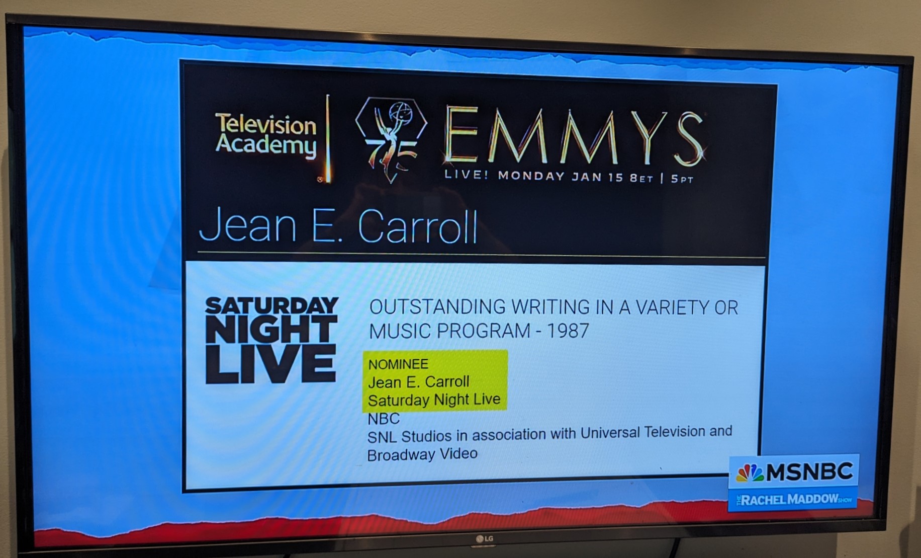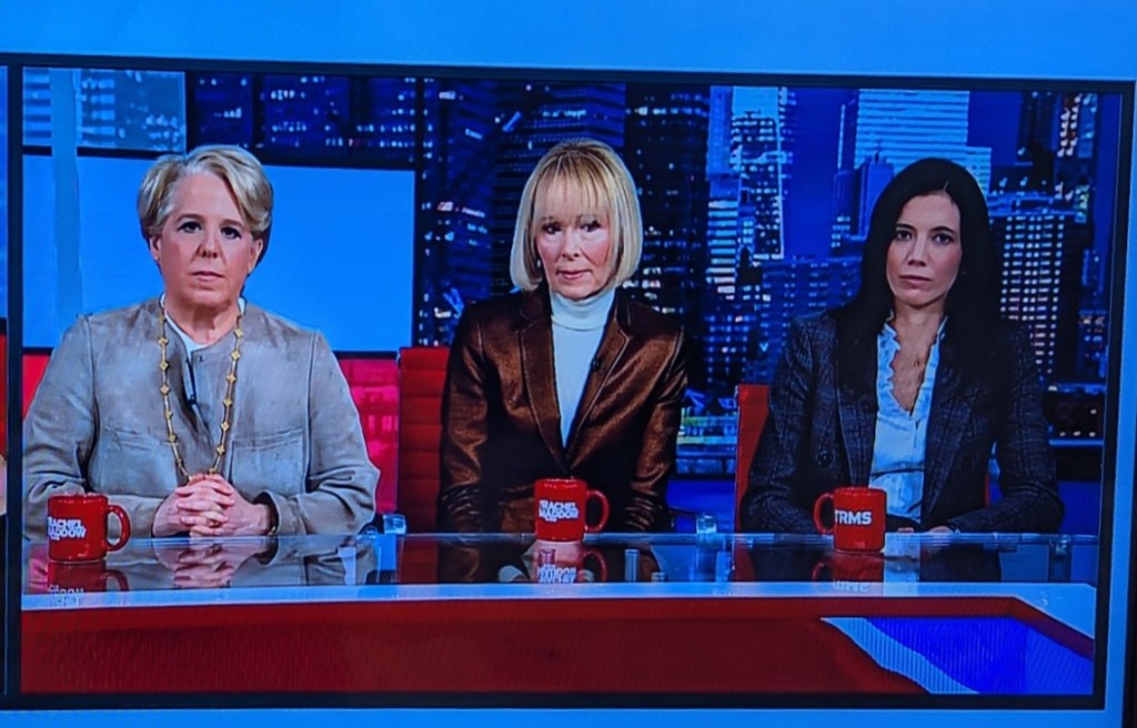 This was riveting watching as Rachel introduced the interview with a wonderfully graphic account of E. Jean Carroll’s background. A game? A men’s magazine? Eccentric articles? And that is only the beginning.