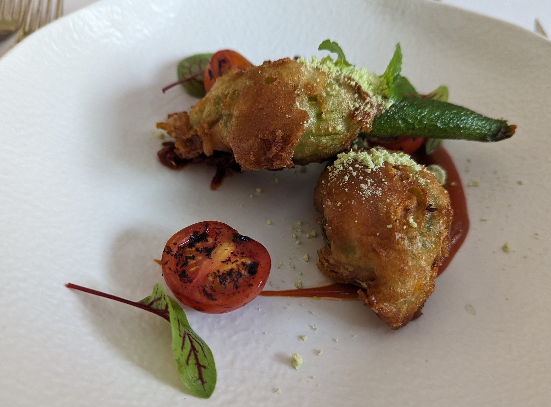 The zucchini flowers were still on the menu and as delicious as ever. Alas the tuna dish has disappeared, but the entree of duck breast and quail was an excellent replacement.