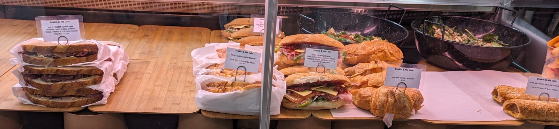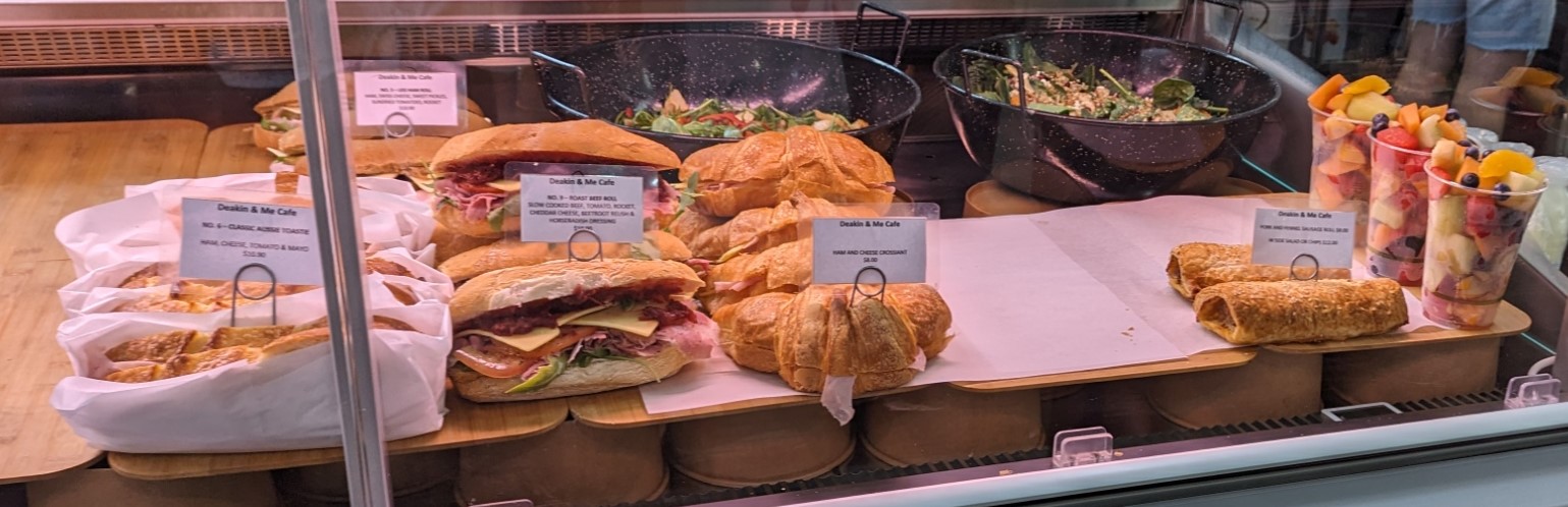 Deakin & Me is a friendly cafe, with indoor and outdoor seating. The coffee is excellent, the pastries very tempting, while the luxurious fruit salad cups add another dimension, as do the generous cooked meals.