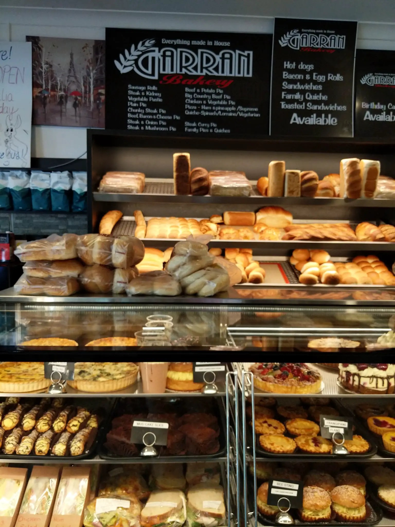 The photos are from the Garran Bakery site. I visited and had one of their excellent coffees while sitting under the trees. This is a dog friendly cafe with indoor and outdoor seating. The pastries look wonderful, and well worth another visit. Even more important, the staff are friendly and marvelously efficient.