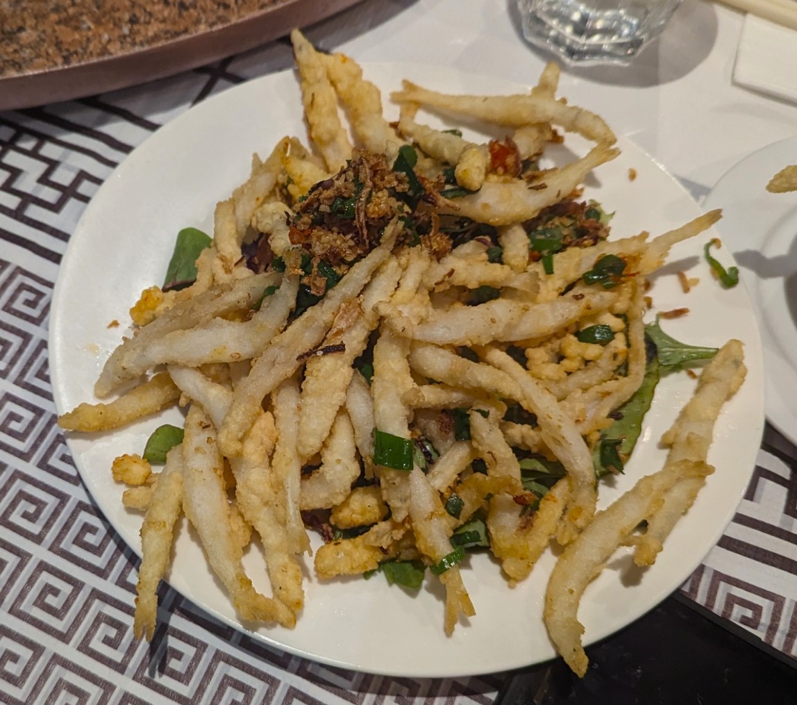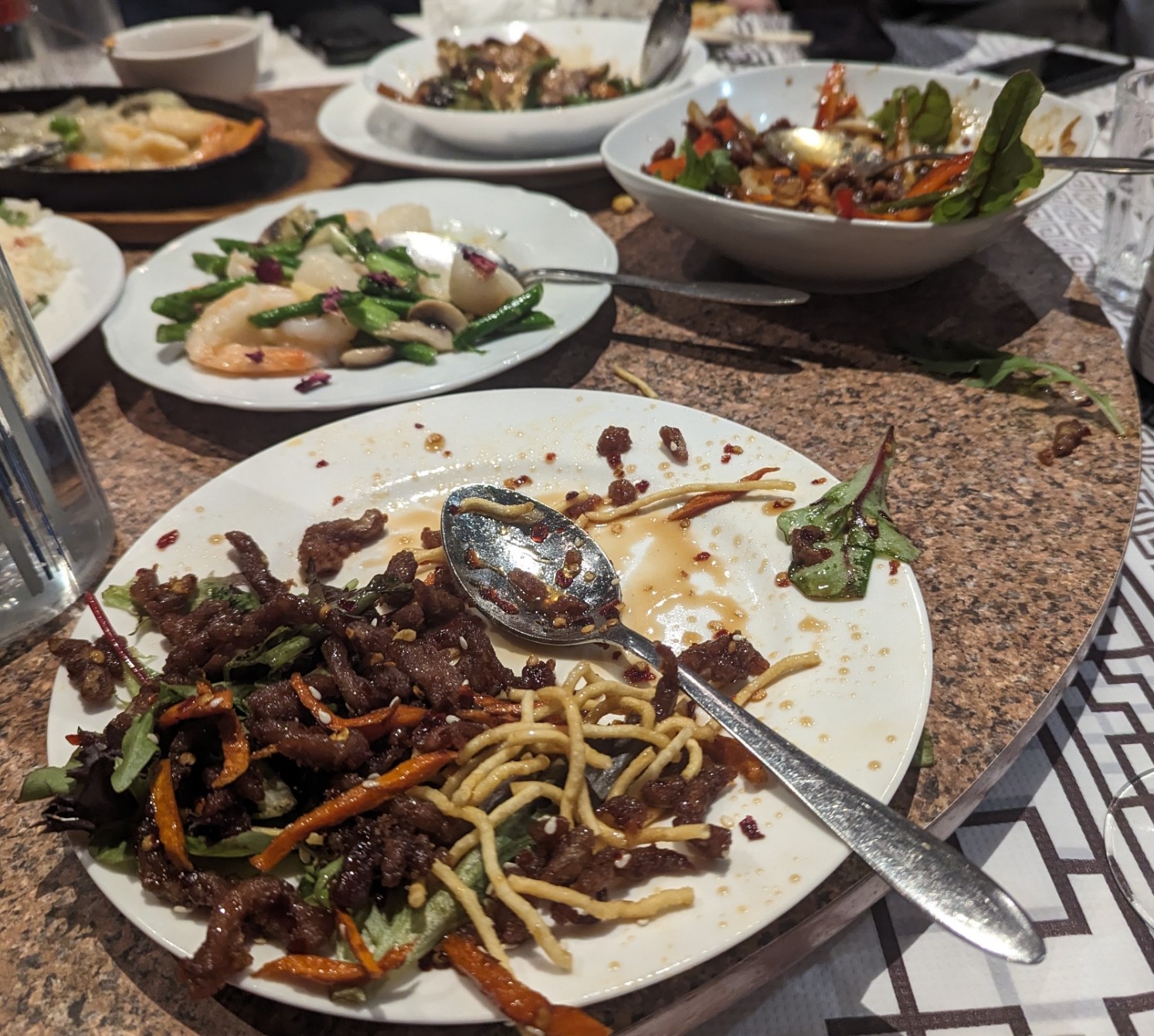 Having enjoyed a takeaway meal from the China Tea Club (delivered by their own staff) I was pleased to be able to experience the food in their restaurant. The menu is varied and delicious, the service prompt and friendly, the seating comfortable and the ambience very pleasant. The table was large enough to accommodate eight people, but the conversation was easy to follow although the restaurant was full of other lively groups. The prawn dishes were delicious, as was the crispy whitebait. The duck pancakes were an authentic touch; however, the San Choy Bow we had delivered were perhaps better. The beef dishes met the high expectations, the fried rice and plain rice were generous and the vegetable, and mushroom dishes excellent too.
