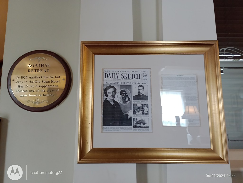I have two novels in which Agatha Christie features, and one in particular conjures wonderful images related to The Old Swan Hotel. A Talent for Murder by was written by Andrew Wilson while Christie was alive. When she asked him to defer publication for forty years he did so. It is still a good read, explaining Agatha Christie’s eleven-day disappearance as part of a murder plot – with her committing the murder! It is clever in that it weaves true events – most humorous Christie dancing in the hotel to “No We have No Bananas”, and a death that did occur at the time, and in circumstances that fit with plot.